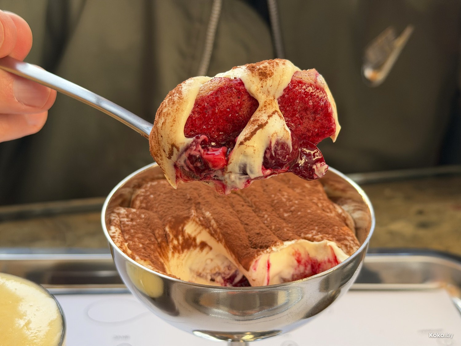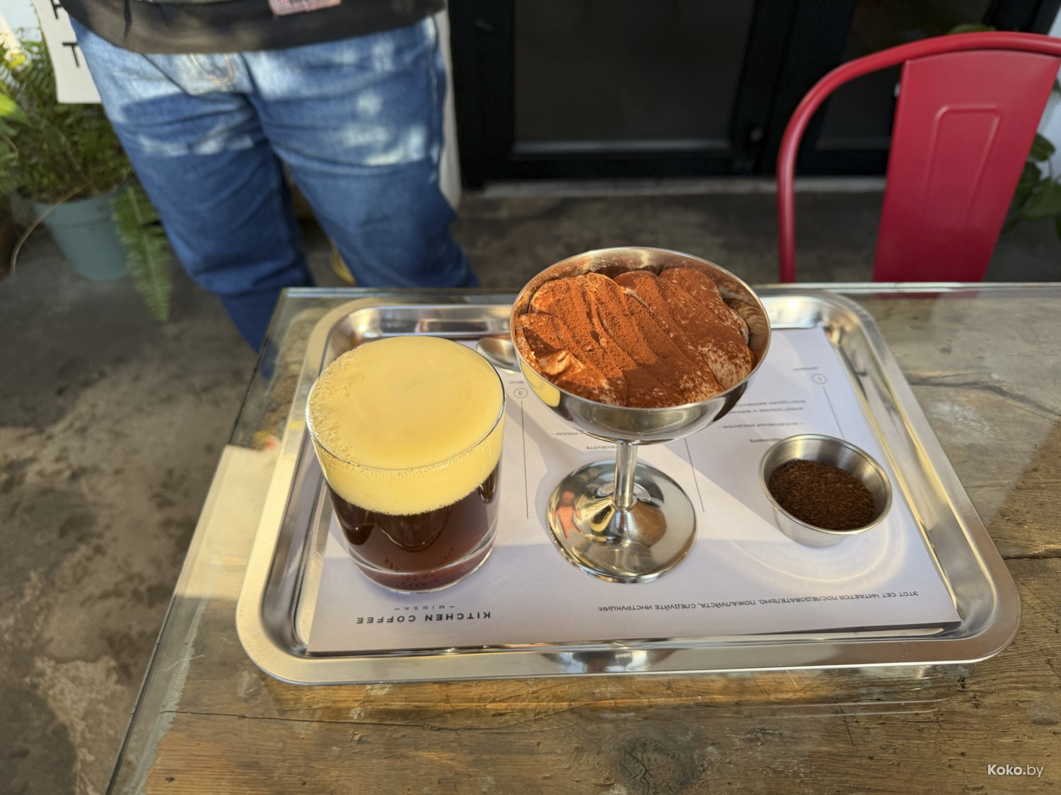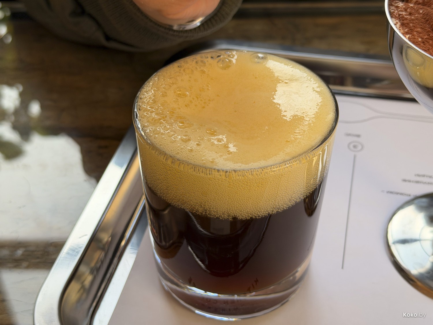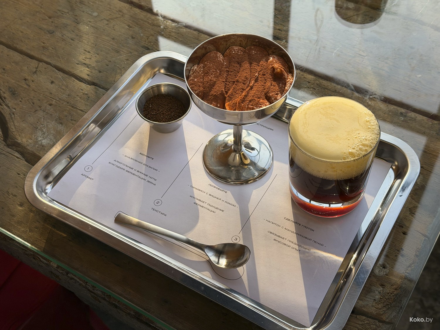 Запарились и выдали в стакане тёплый фильтр с безалкогольным виски под мандариновой пенкой. В металлической на ножке креманке савоярди, пропитанные ромом, с вишней под пышным кремом.
