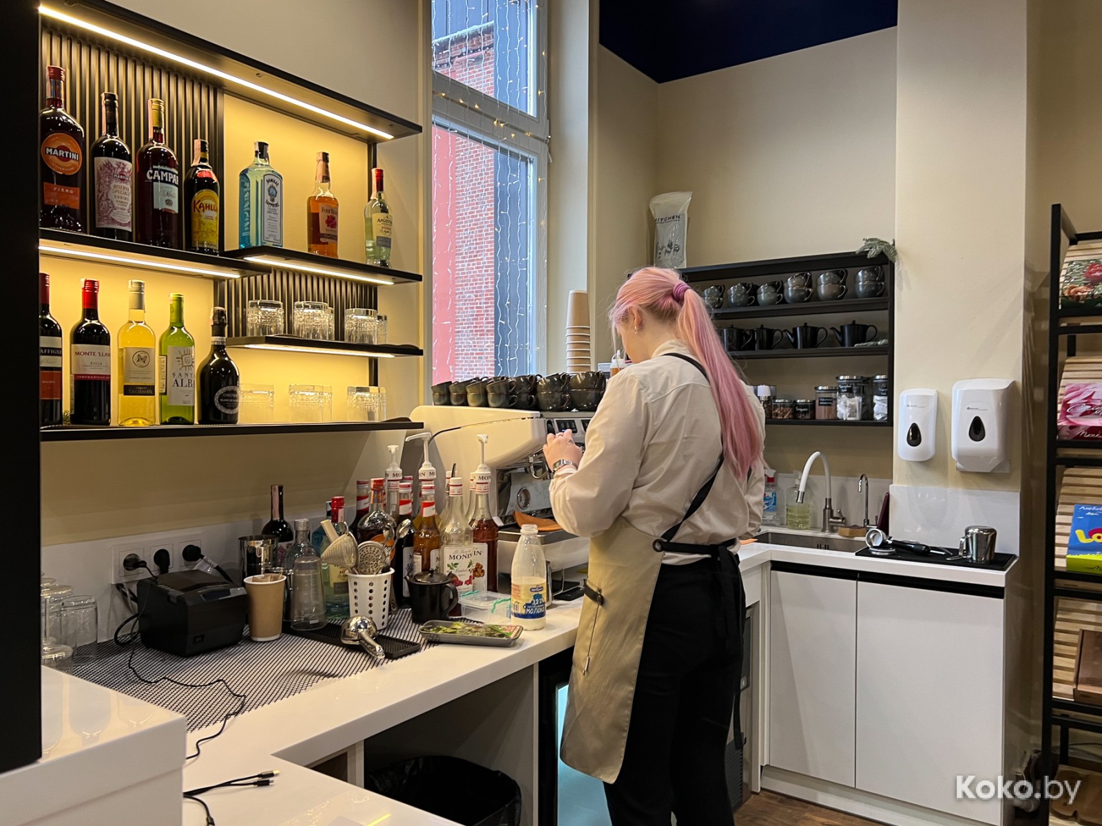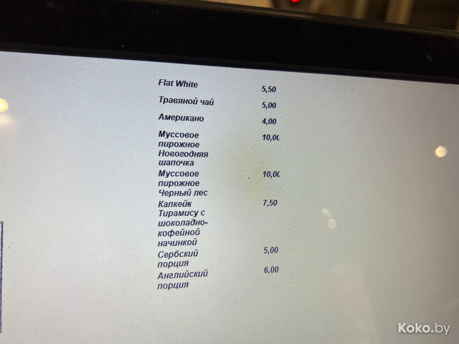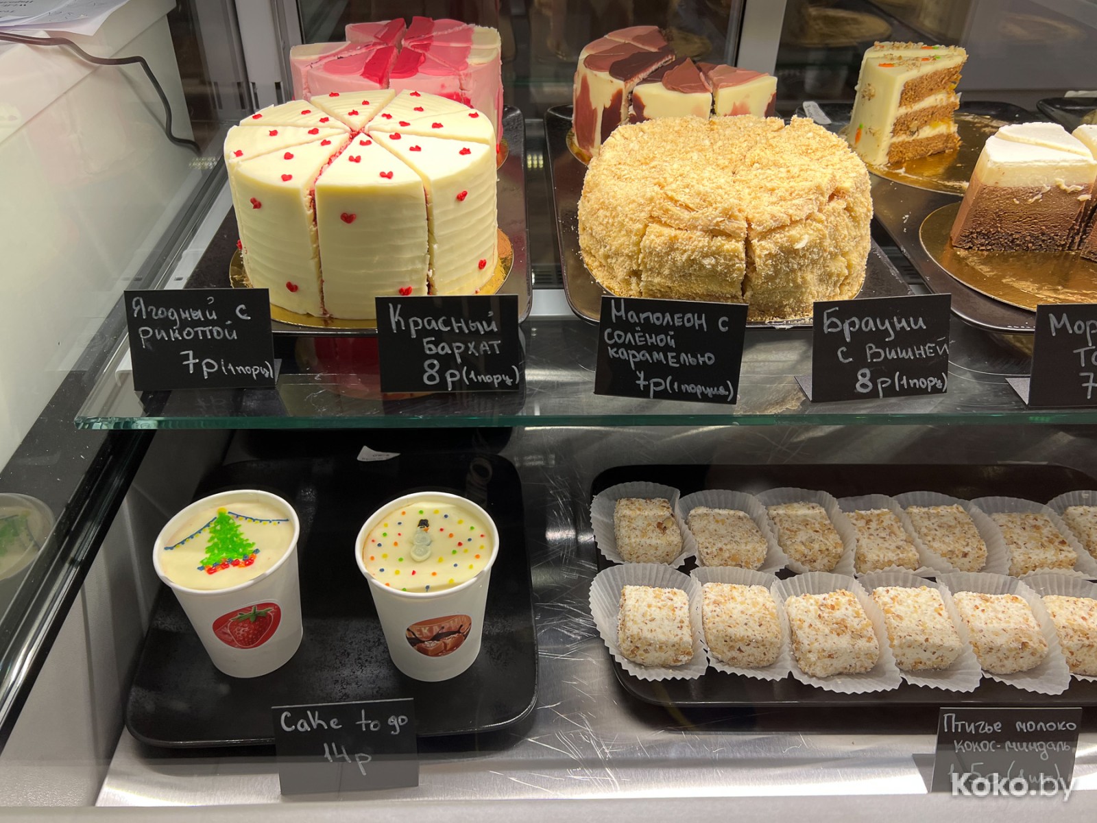 Кофе варят хорошо, десерты муссовые по 10byn - симпатичные, вполне съедобные, но не ключ к сердечку. Кусок тортика от 6,5byh за белый шоколадный в солёной карамели, до 8byn за влажный брауни с вишней.