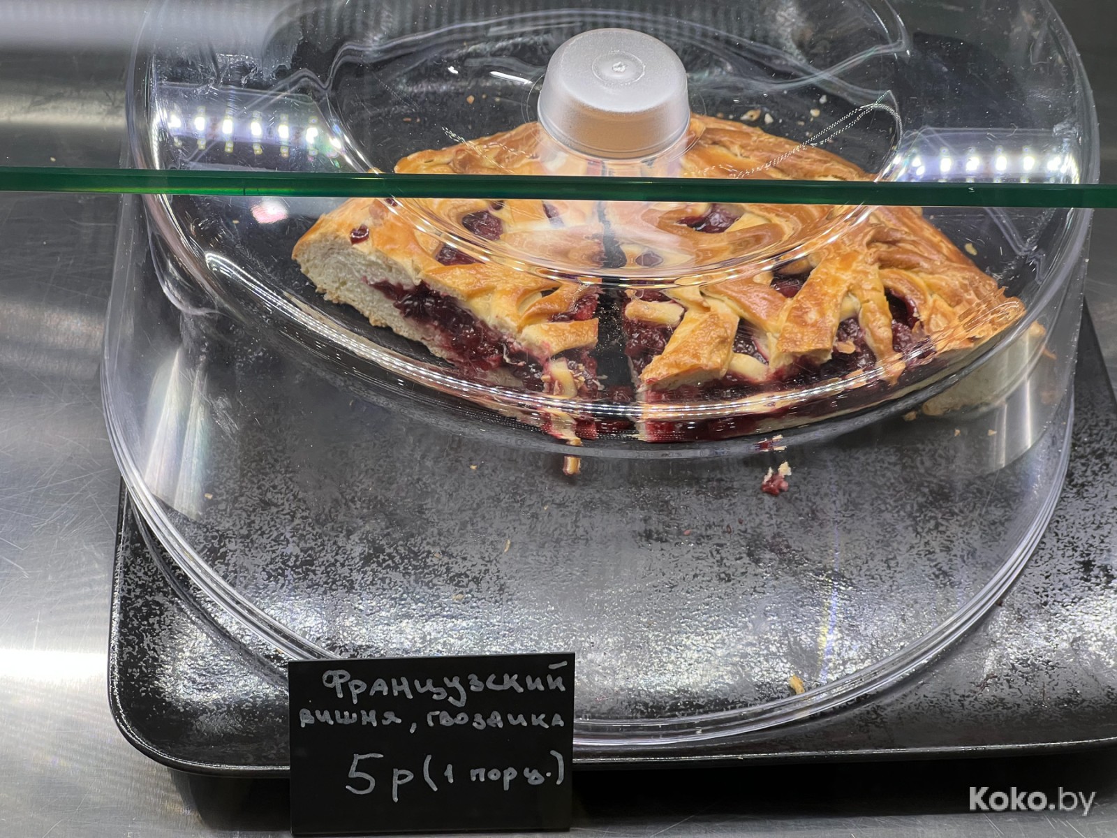 Сегодня на витрине по пирогам скромный выбор от 4 до 6byn за кусок, но спасибо, что не вчерашние. Ценю в пирогах: А - количество начинки на один квадратный сантиметр теста, Б - тонкое тесто. Тут всё чинно, но по своей сути пирог и пирог, если есть пироговые сомелье, жду вас в комментариях. За эти деньги я бы самсу с барашком взял и рубль сдачи.