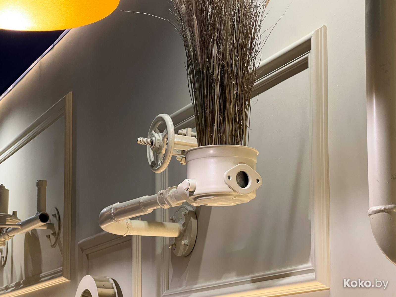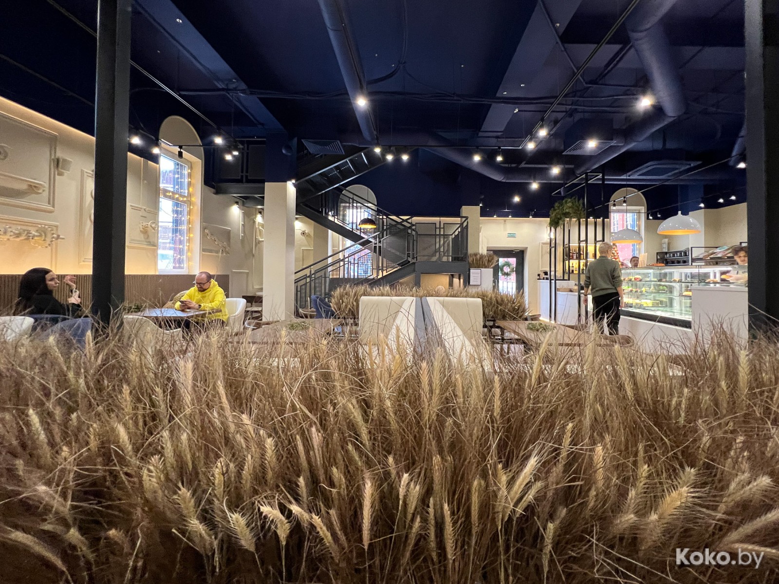 Наш путь лежит вглубь дворика, где и находится двухэтажная пекарня. На первом уютный зал в стиле «битва за урожай» с большой посадкой, разделённой колосками пшеницы. Со вторым этажом не решили, может коворкинг сделают или приватный клуб с пилонами для мальчиков. Короче, если у вас есть идеи, можете им озвучить под обзором.