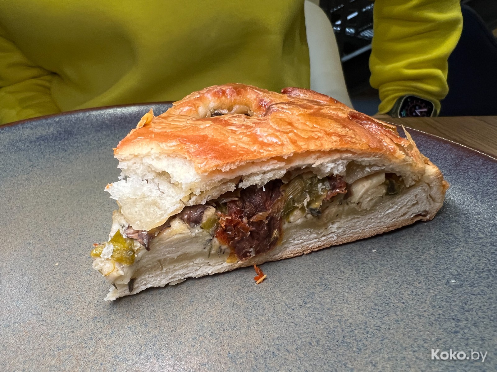 Главный плюс сей истории - возможность купить кусочек пирога, так можно прицениться к начинке, чтобы потом на праздник целый заказать. Кроме этого в меню свои десерты, кофе и зачем-то алкоголь. Если старику не изменяет память, на доставке у них около 24 видов начинок по вкусовым стереотипам стран мира, киши и «расти жопка» синнабоны. Смело могу рекомендовать Испанский с запечённой говядиной, сладким перцем, томатами, луком, копчёным сыром в соусе Чили, цена вопроса около 38byn за 1 кг. Припоминаю лютую проблему с доставкой, но не помню причины: или забили на меня, или не вовремя дома.