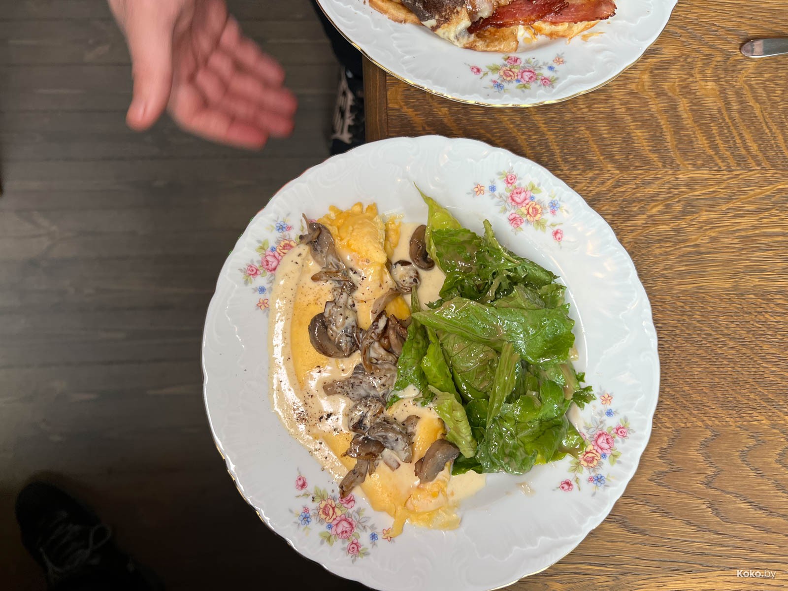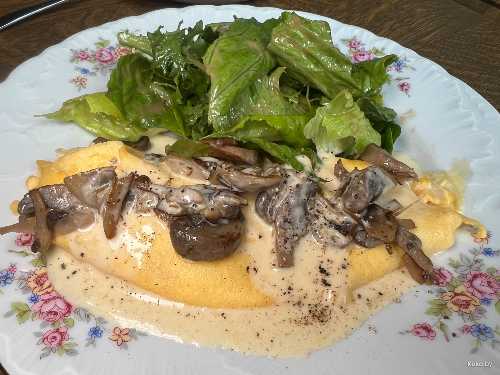 3. Просто воздушный омлет с просто грибами в просто сливочном соусе с просто салатом. Просто завтрак за всего 12byn, дайте хлеба!
