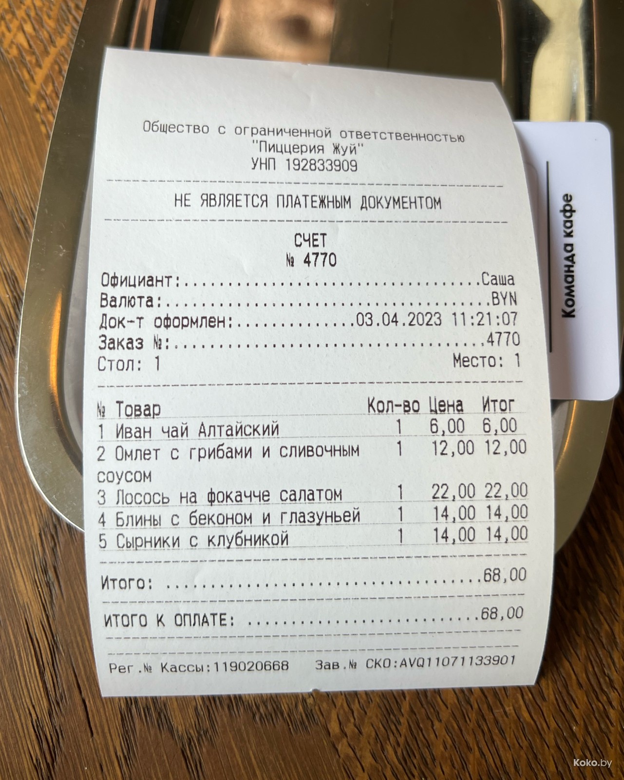 С годами привык вставать часиков в семь, а завтракать в восемь, поэтому всё, что с 10:00, для меня ни к селу ни к городу. Из плюсов, что у этих товарищей завтраки, но бранчи подают до самого вечера, а это значит, вам без проблем взболтают скрэмбл или пожарят сырники на ужин.