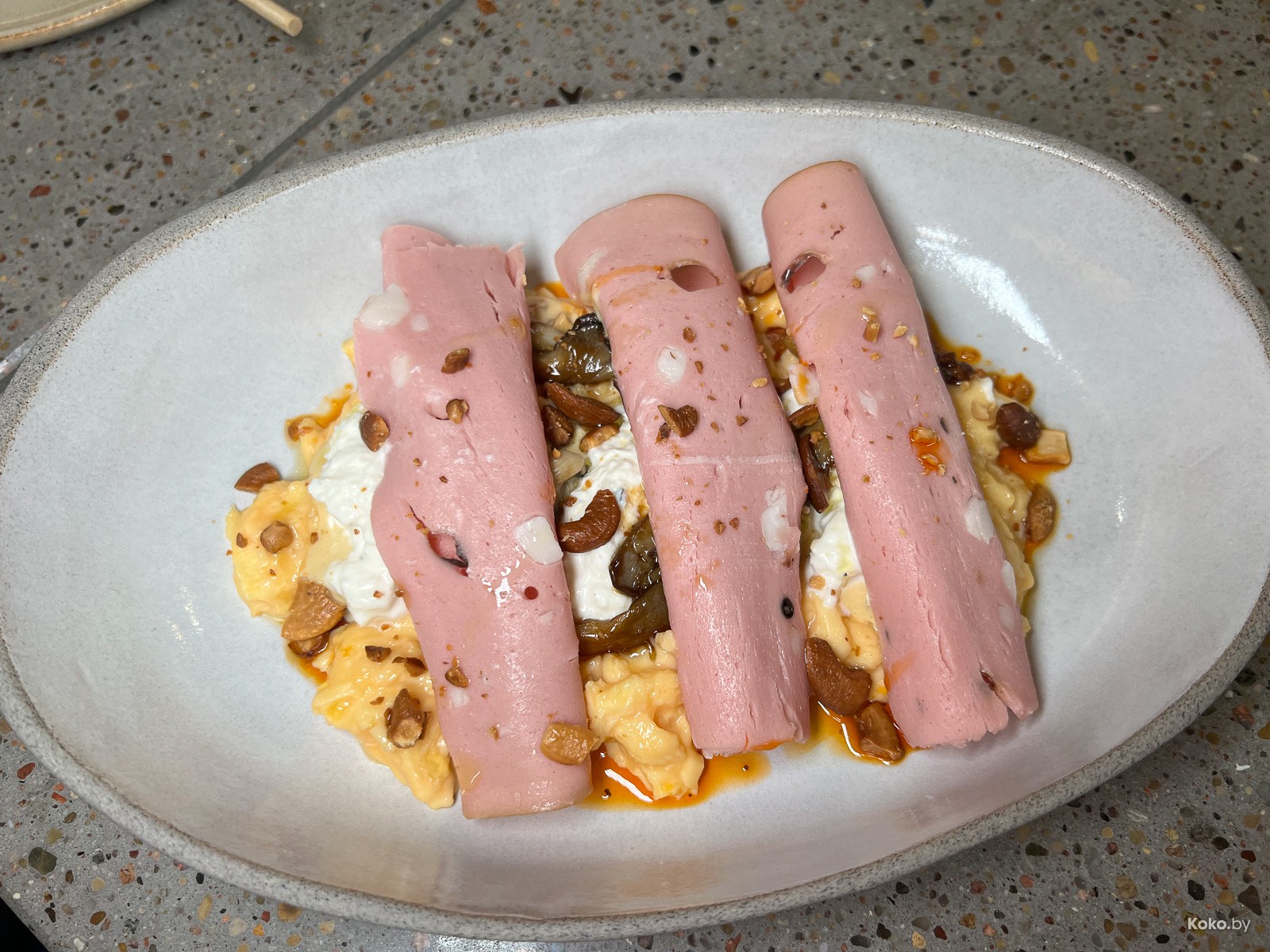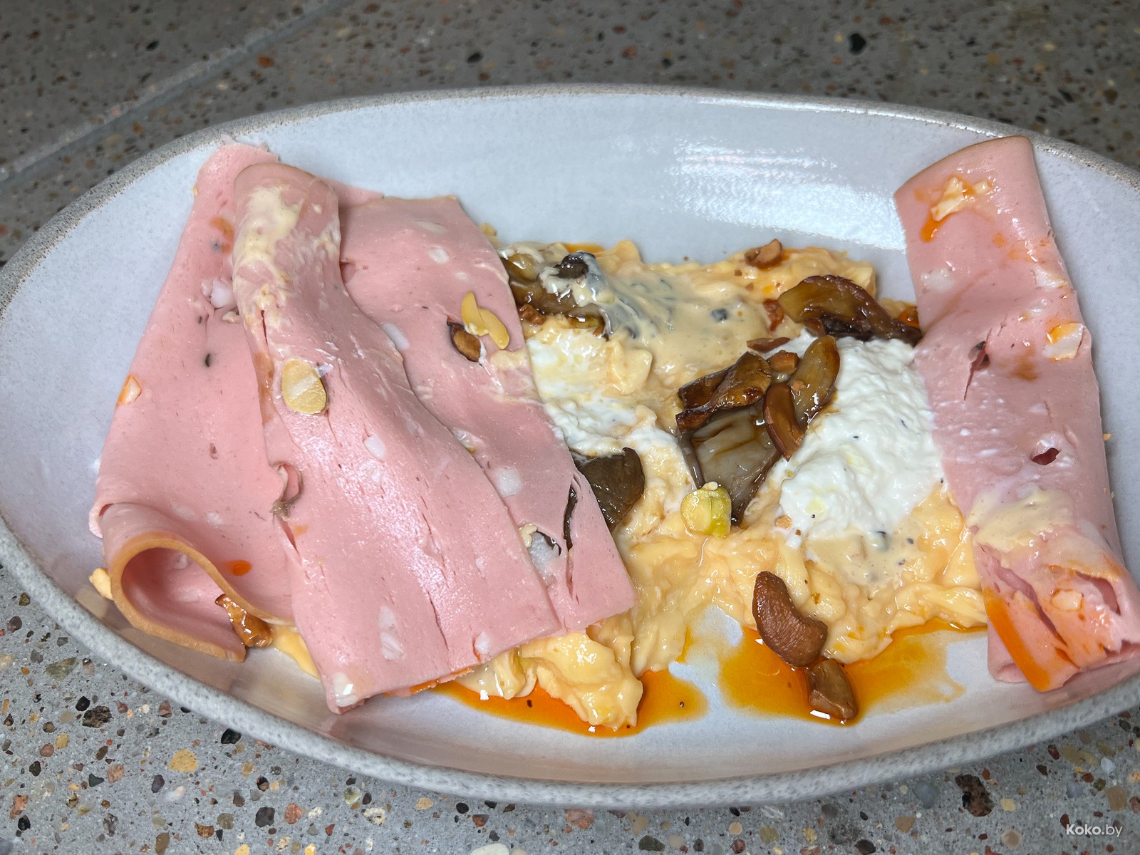 2. Сливочный скрэмбл с нашей колбасой, вешенками и ароматом трюфелей за 18byn идеально вписывается в завтрак, дайте хлеба!