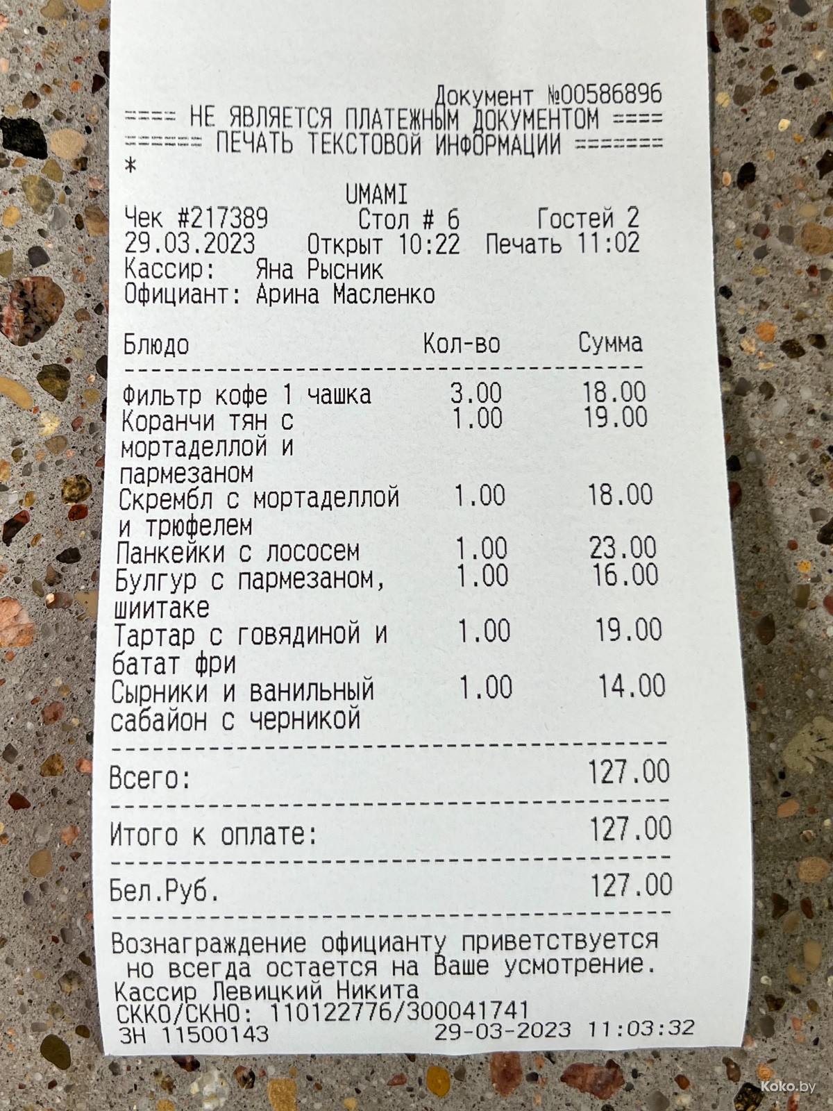Средний чек 25byn, если в один курс с кофе. Завтраки эмоциональные, вкусно, выбор есть, бесплатной воды - нет, мне неуютно, томно!