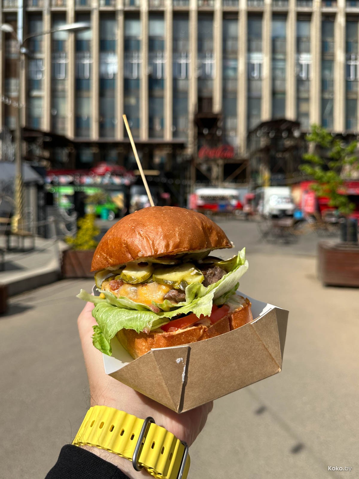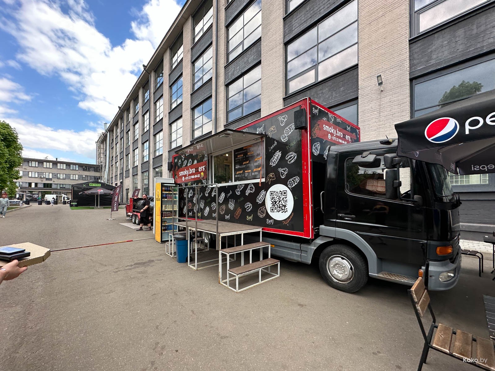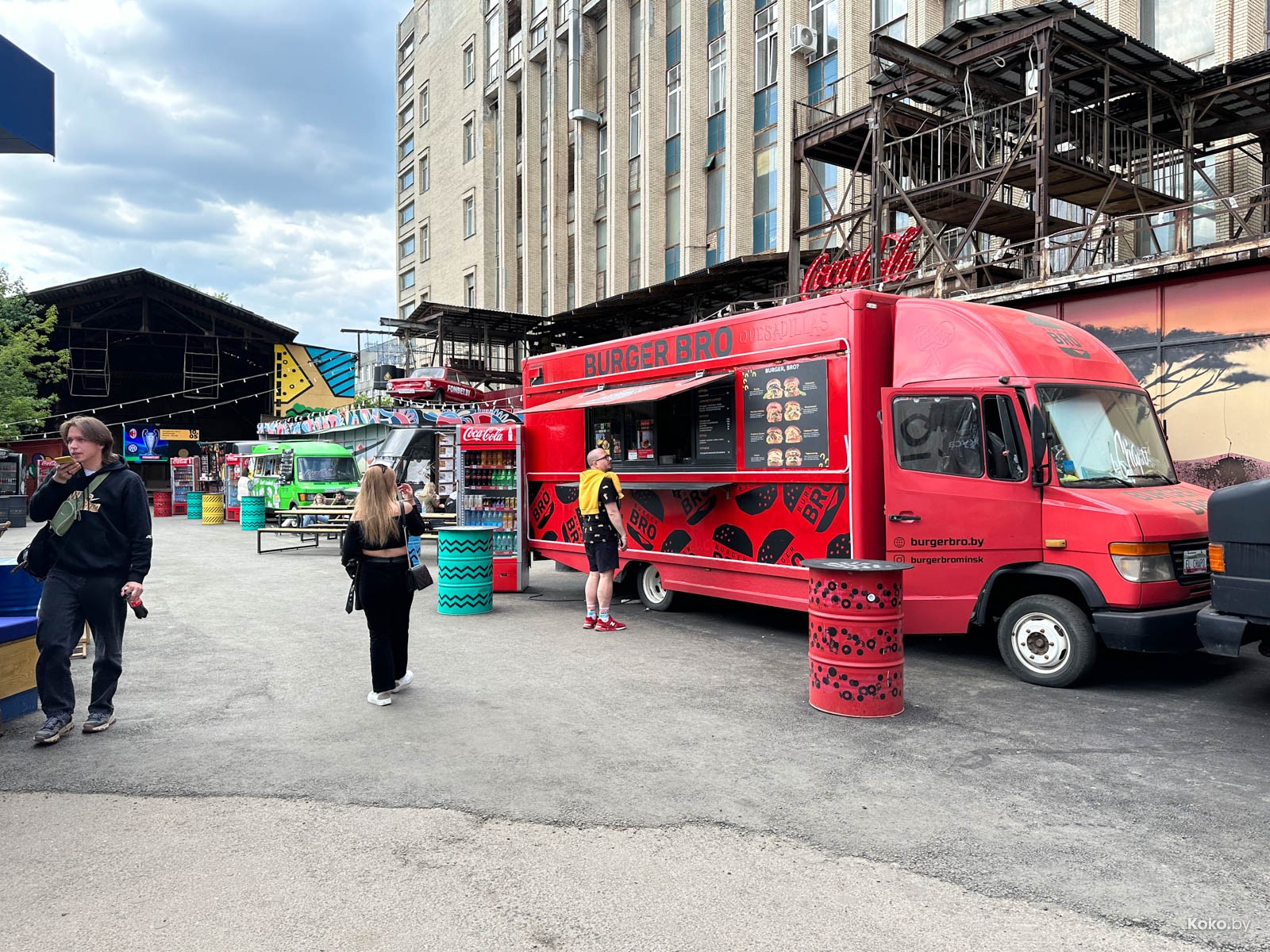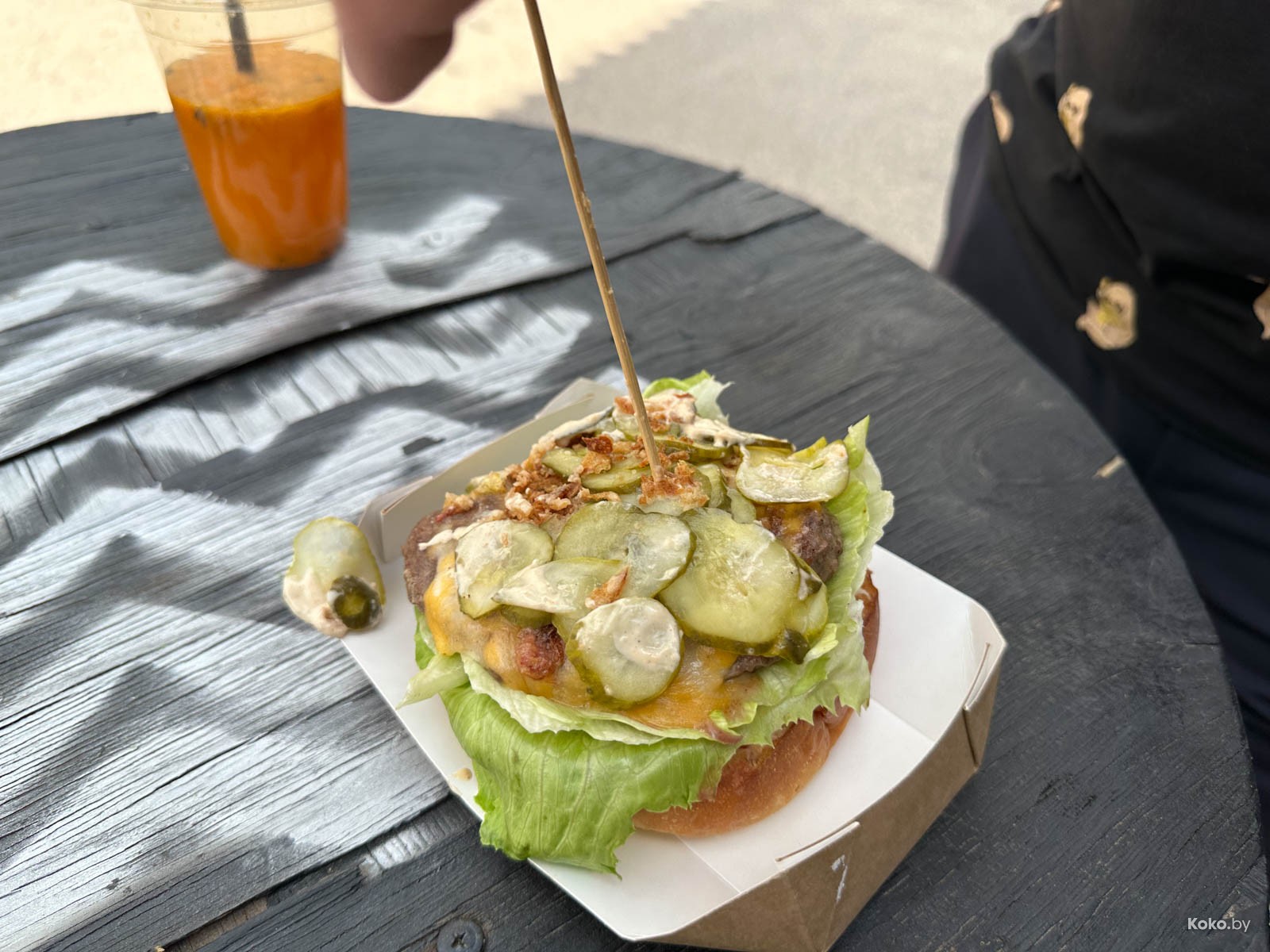 3. С колёс «Бургер Бро» вынес классический бургер за шок для уличной еды - 18byn. И был он, как справедливый бургер: большой, сочный, с мясистой котлетой, с сыром и овощами под пышной булкой. Падабайка!