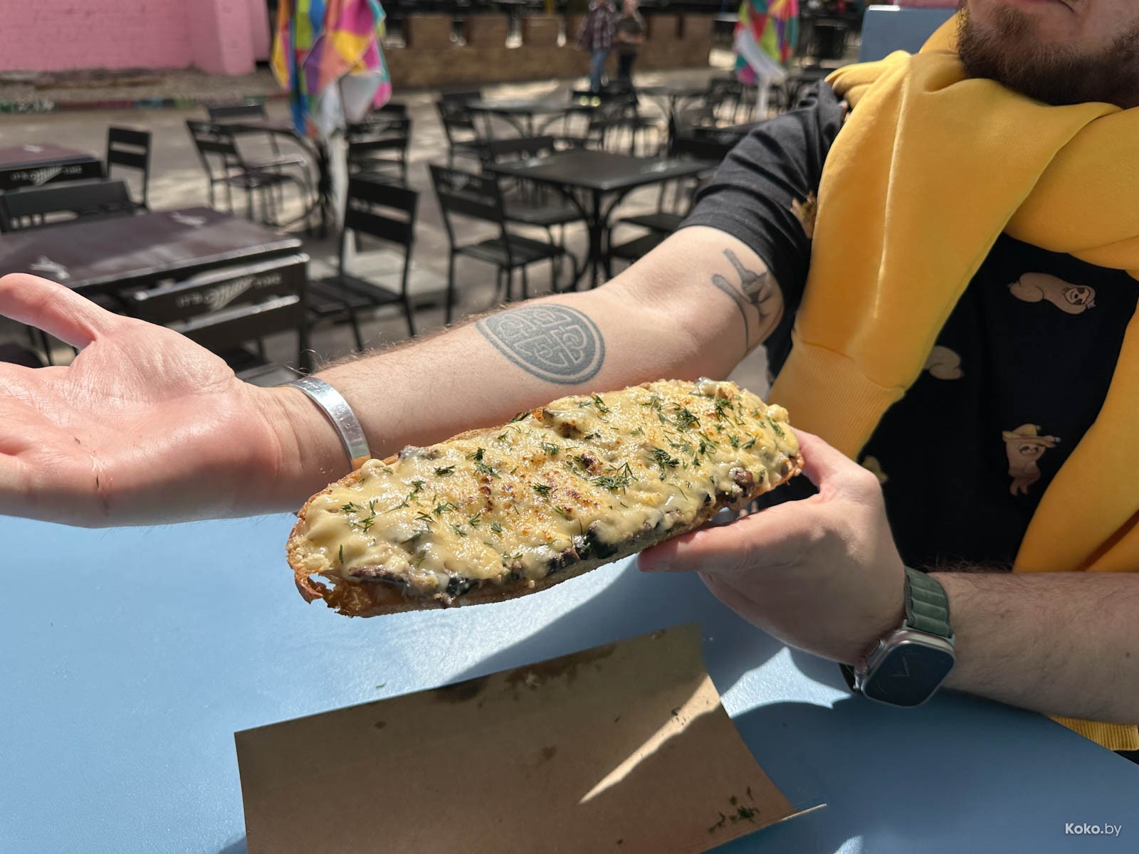 Советую жульен на мягком, воздушном куске багета с курочкой и грибами под запечённой сырной корочкой, идеально освежил всё это дело укроп. За 9,50byn сытно, вкусно, прям отлично на 8 кокобаев!