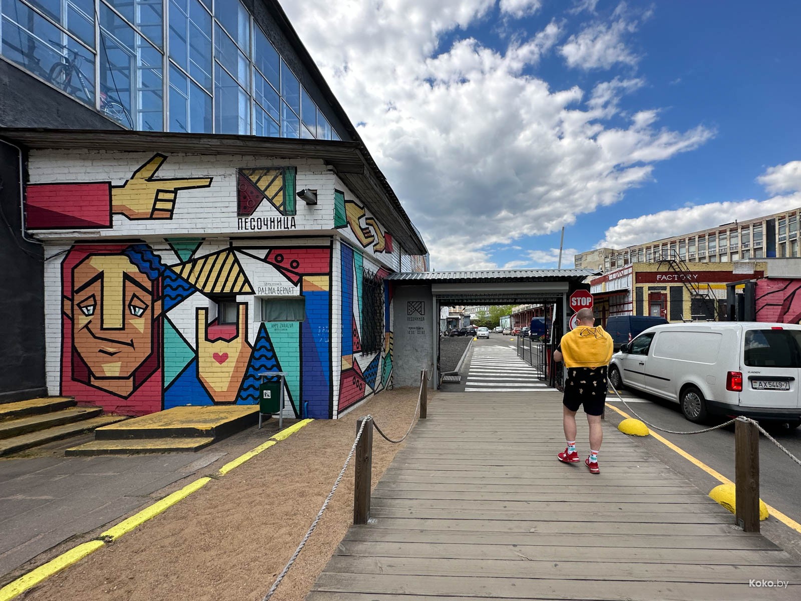 В тени зданий бывшего завода найдёте эту улицу, где, если грянет дождь, вам будет укрытие. В основном наблюдаю взрослую аудиторию.