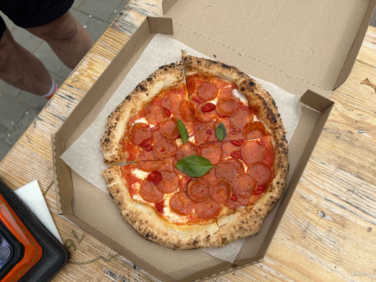 Та самая неаполитанская пицца на дровах из гродненского «Пицца трака», в рекламе не нуждается, на 9 кокобаев! Обязательно к тесту.