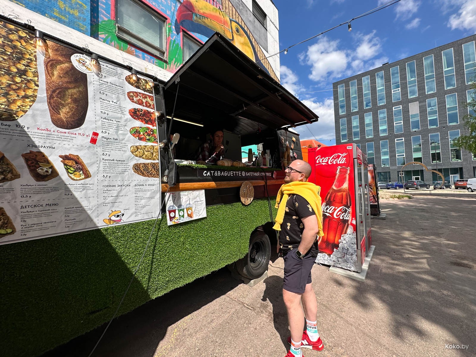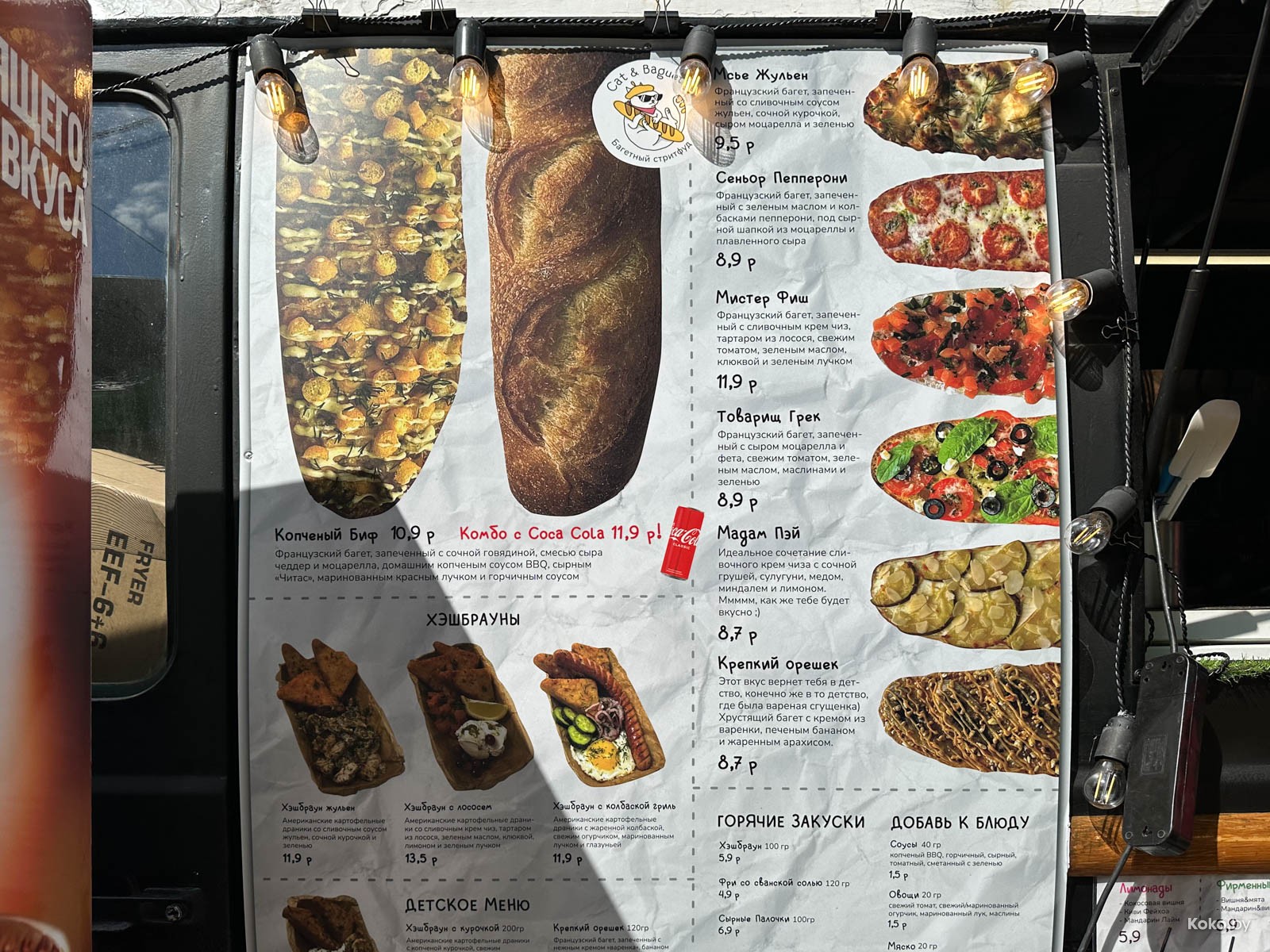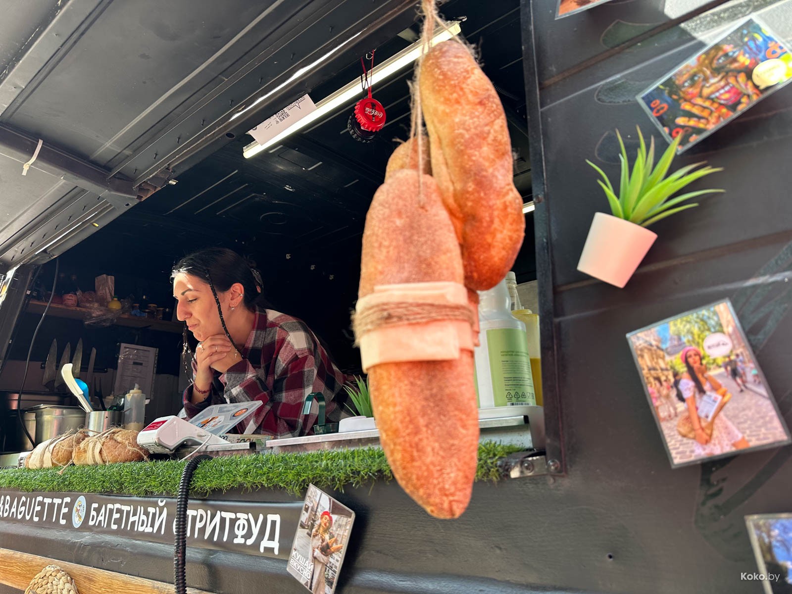 2. Сразу за ними стоит симпатичный чёрный трак «Коты в багете», где готовят большие сиротские французские бутерброды размером с руку.
