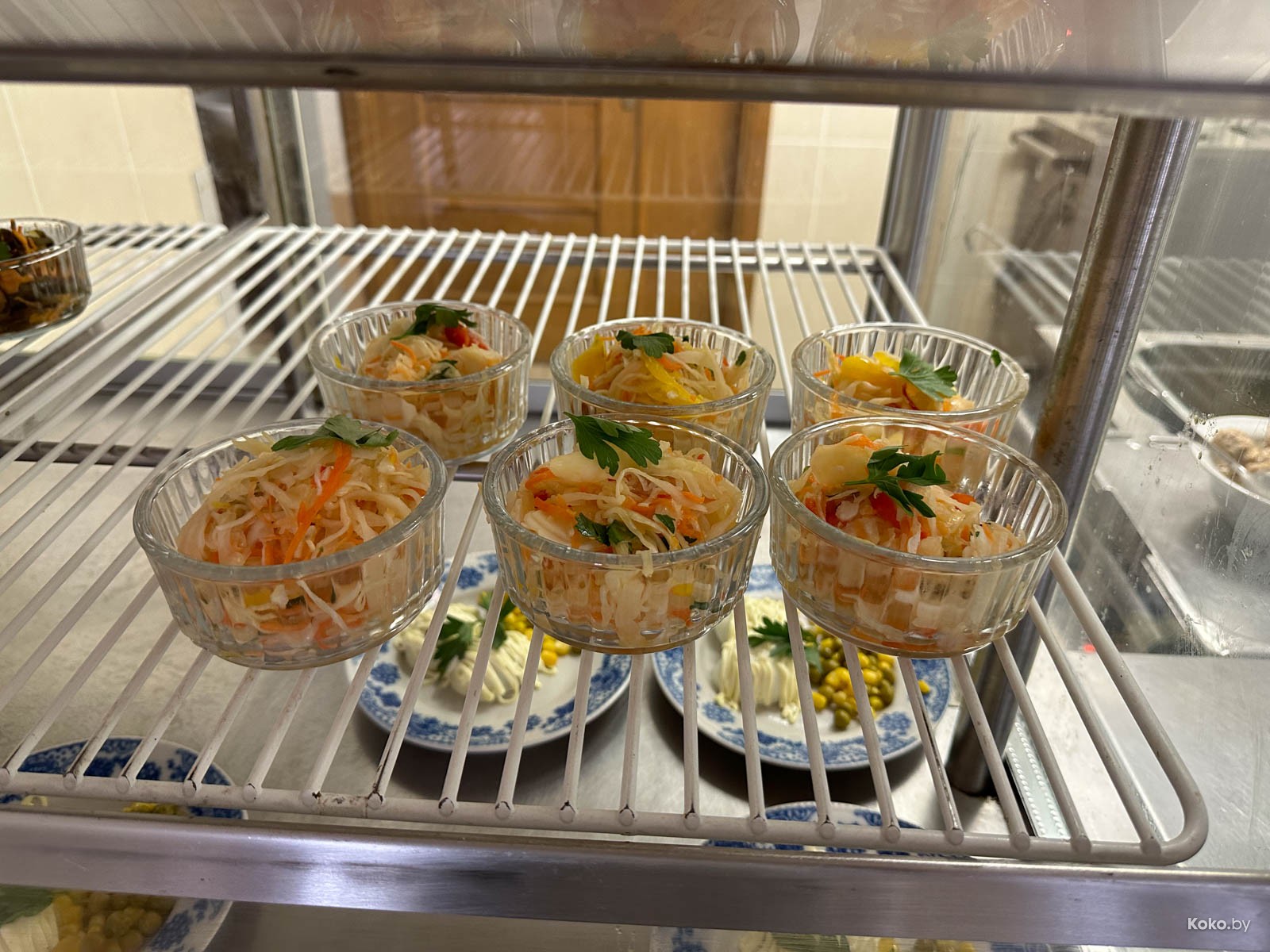 Заработала она со вчера, 22 мая, на проспекте Победителей, 61 по правую руку от центрального входа. Обожаю столовые, в них раскрывается вся суть правильного раздельного питания за скромные шекели. Но, как мы знаем, не все столовые одинаково полезны, вчера мы не без волнения переступили порог места коллективного питания при заводе «Атлант». Позднее утро, есть желание плотно позавтракать, судя по пустому залу, мы первые.