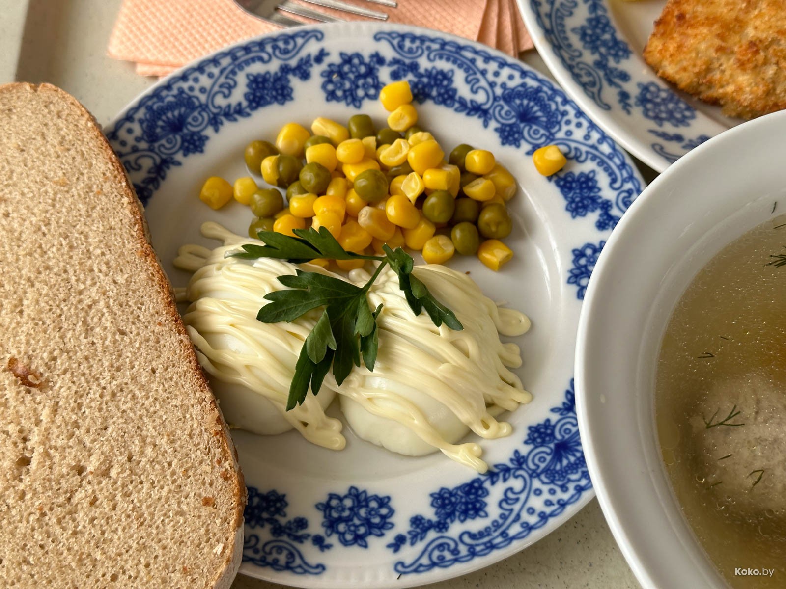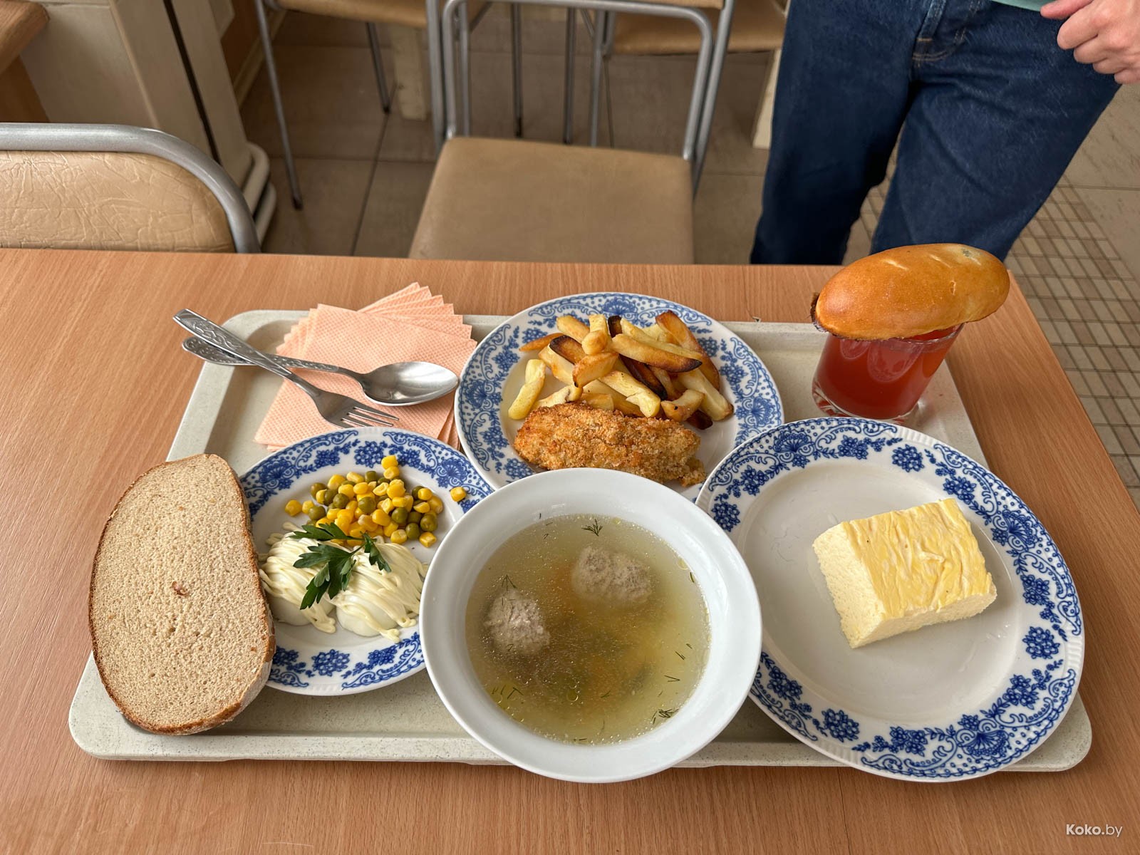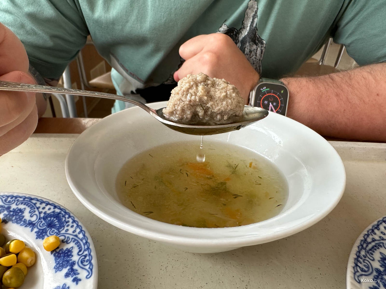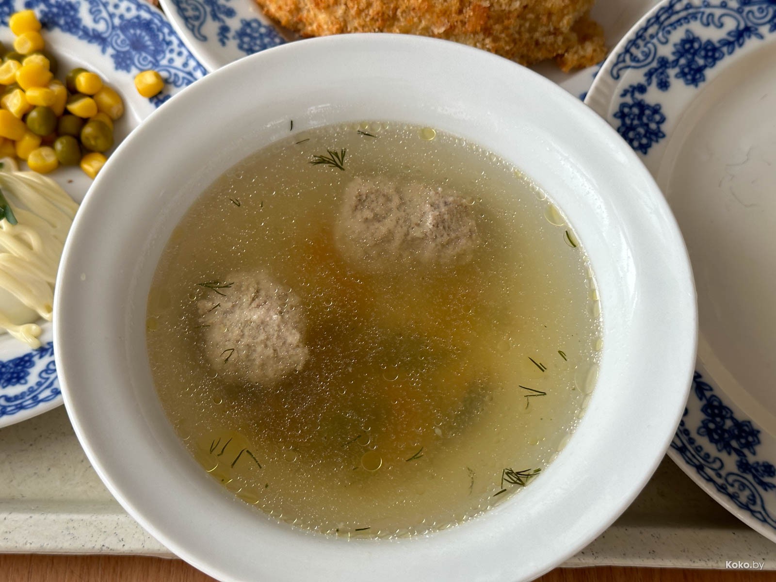 1. Похлебал лёгкий куриный бульон за 1,19byn с двумя мясными тефтельками и минимумом соли. Хлеб - свежий, вкусный.