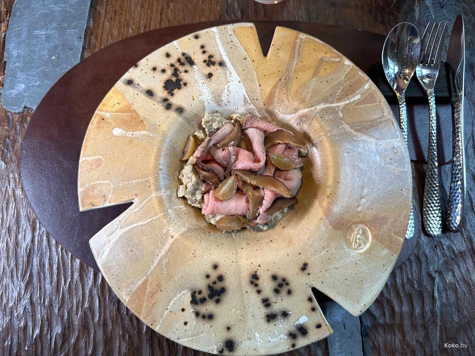 3. Сочные ломтики ростбифа на пряной пасте из баклажанов с грибами шиитаке - 23byn. Хорошее сочетание, сытно, вкусно - философия 21 века.