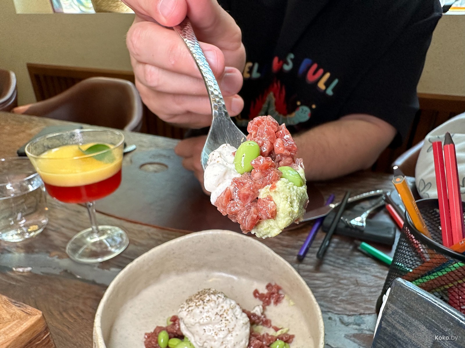 Тезисами и по делу: описать могу в одно слово - вау! К тесту однозначно, но забронить столик сложно, поэтому сразу на амбразуру. Комфортно за любым, но лучше за поварской, сможете увидеть все блюда.