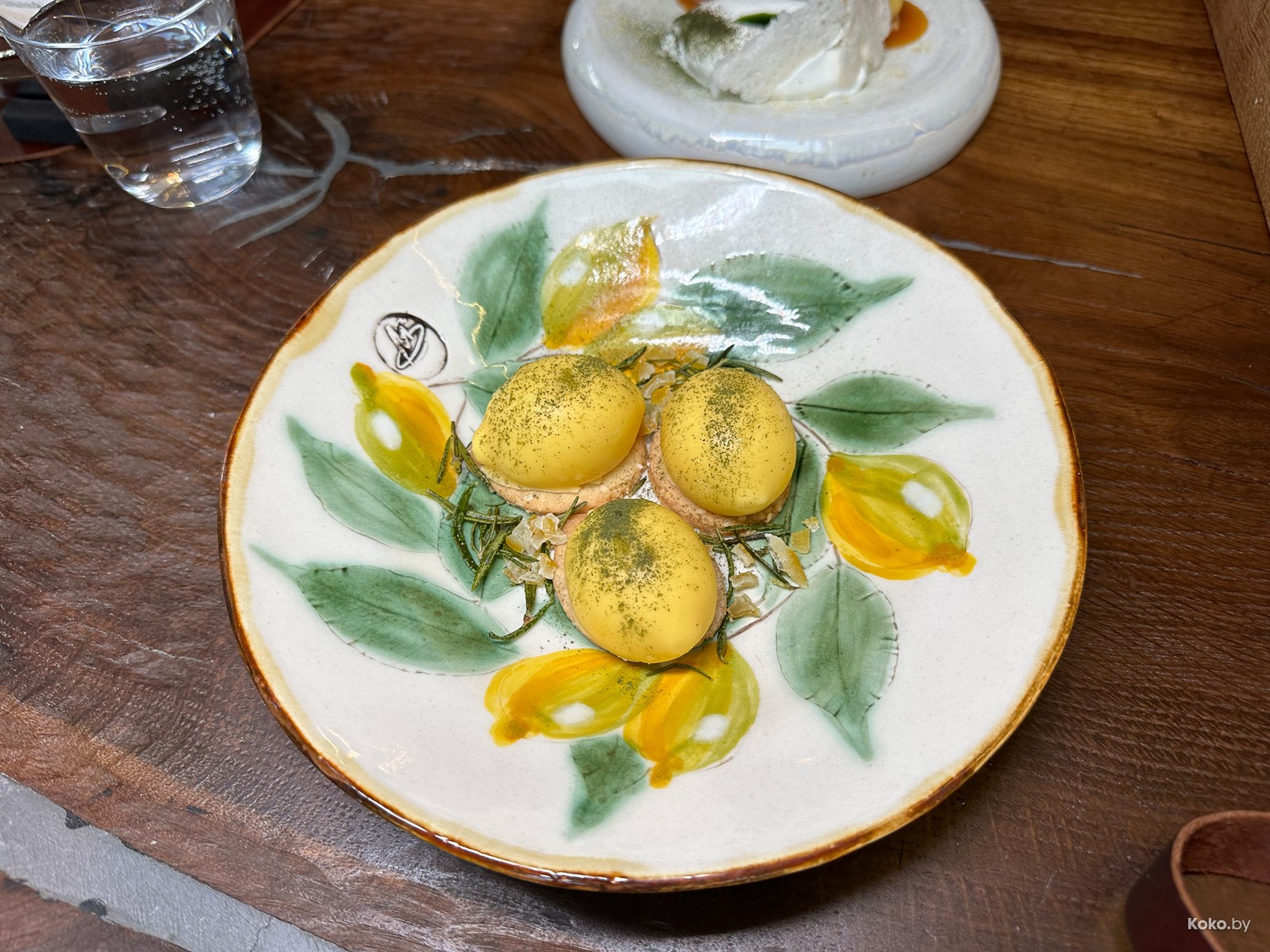 2. Больше инстаграмные, чем вкусные, но опять загнались. На печеньи три лже-лимона в хрустящем белом шоколаде посыпаны жареным розмарином, гармонируют с тарелкой в лимоны, с вас 17byn.