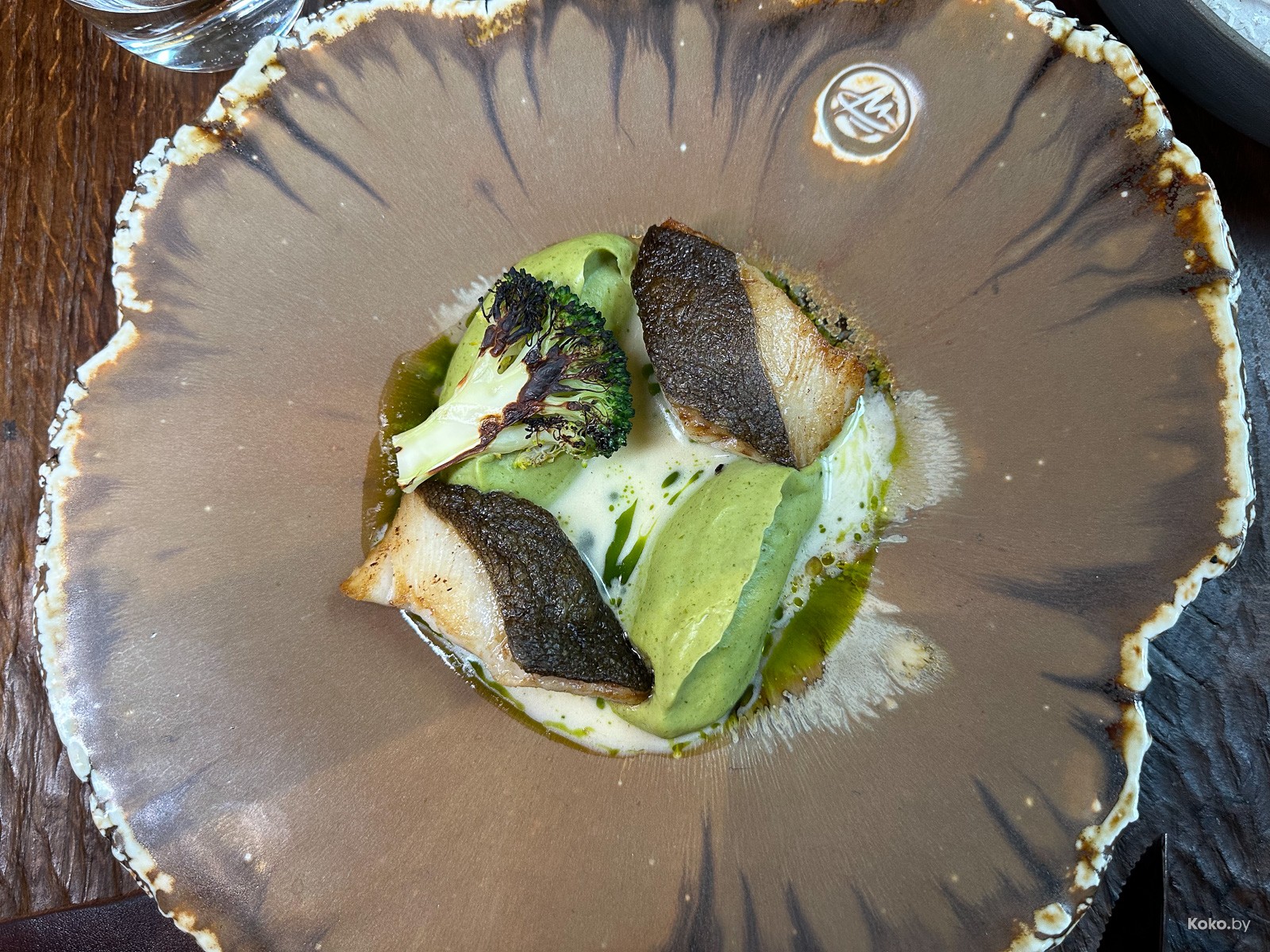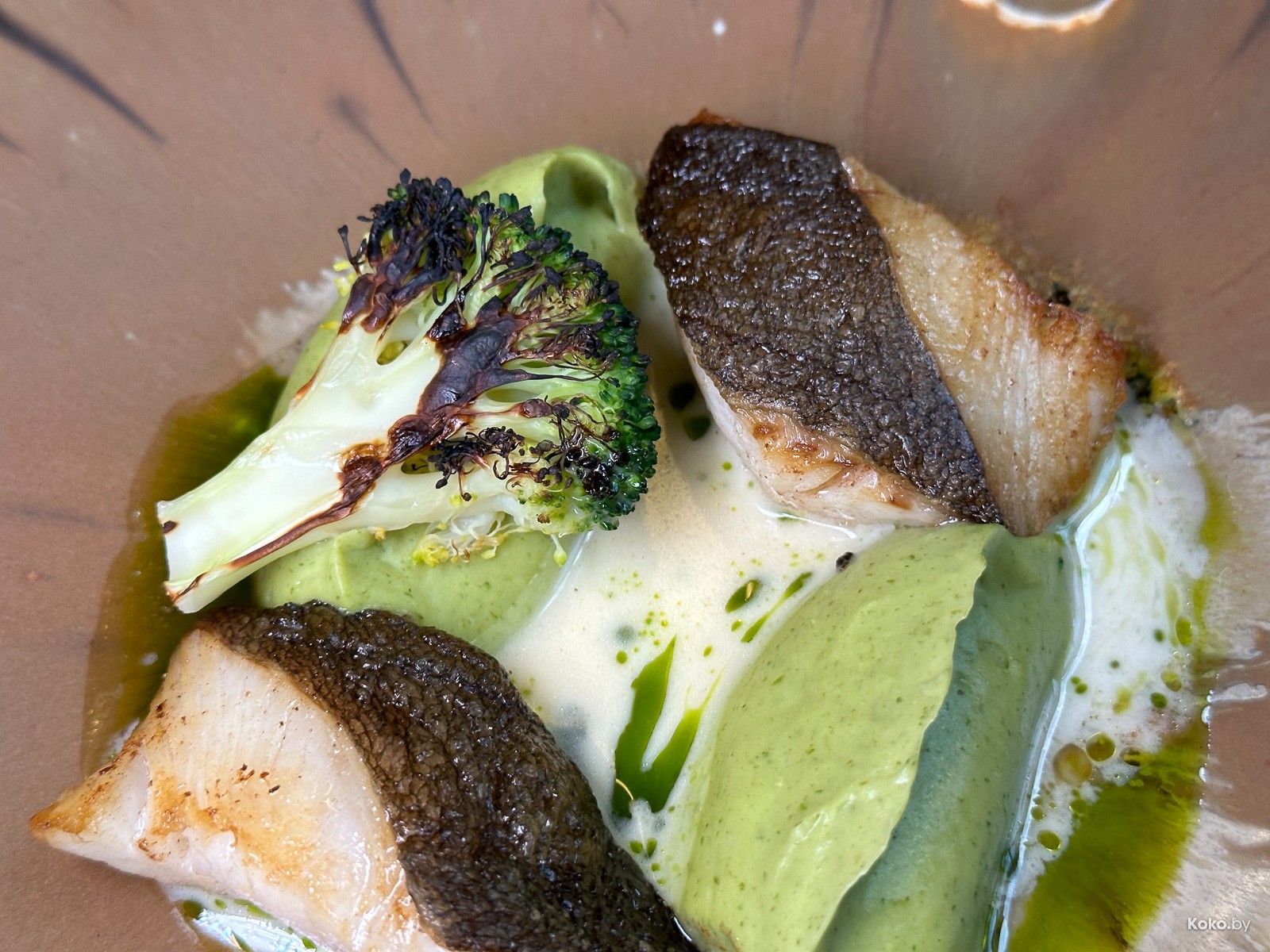 6. Два, как у детей отобрали, кусочка нежного на языке филе угольной рыбы с пюре из брокколи - с вас 38byn! Довольно-таки редкий вид рыбы, если это реально она, я бы всё равно не признал. Рыба и рыба.