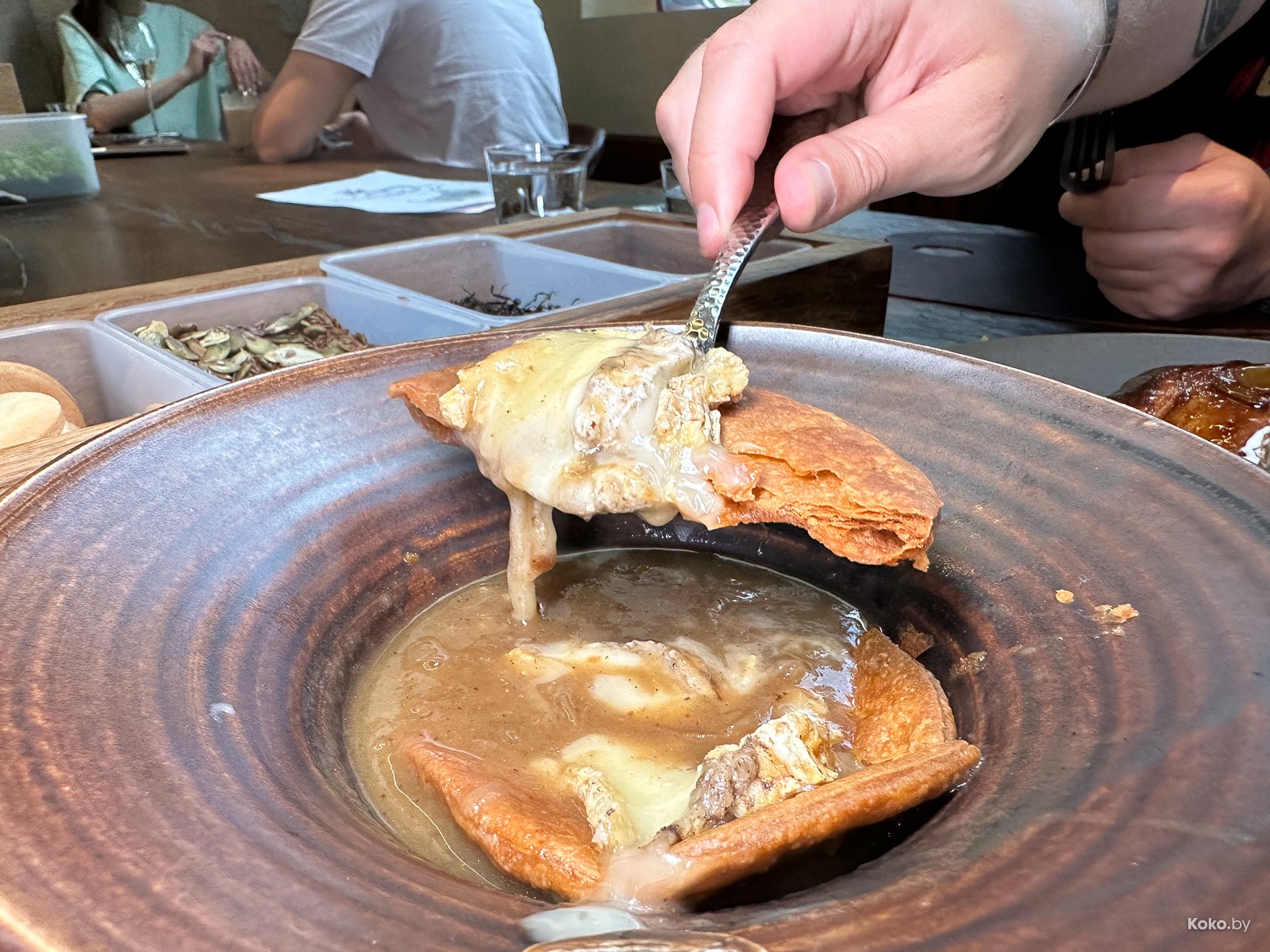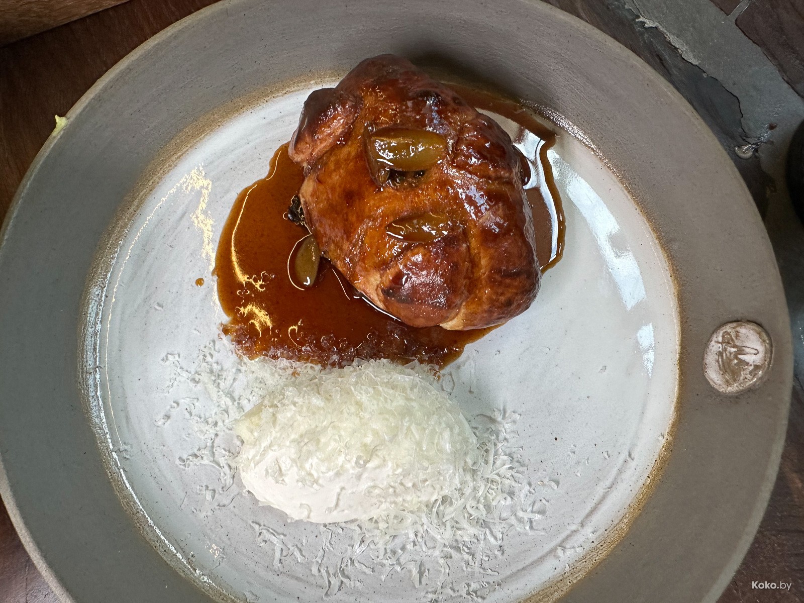 4. Обожаю луковые супы, тут его подают авторски с трюфельным сыром таледжио, который плавится от температуры сладковатого бульона. За маленький чугунок просят 17byn, ради него уже готов вернуться.