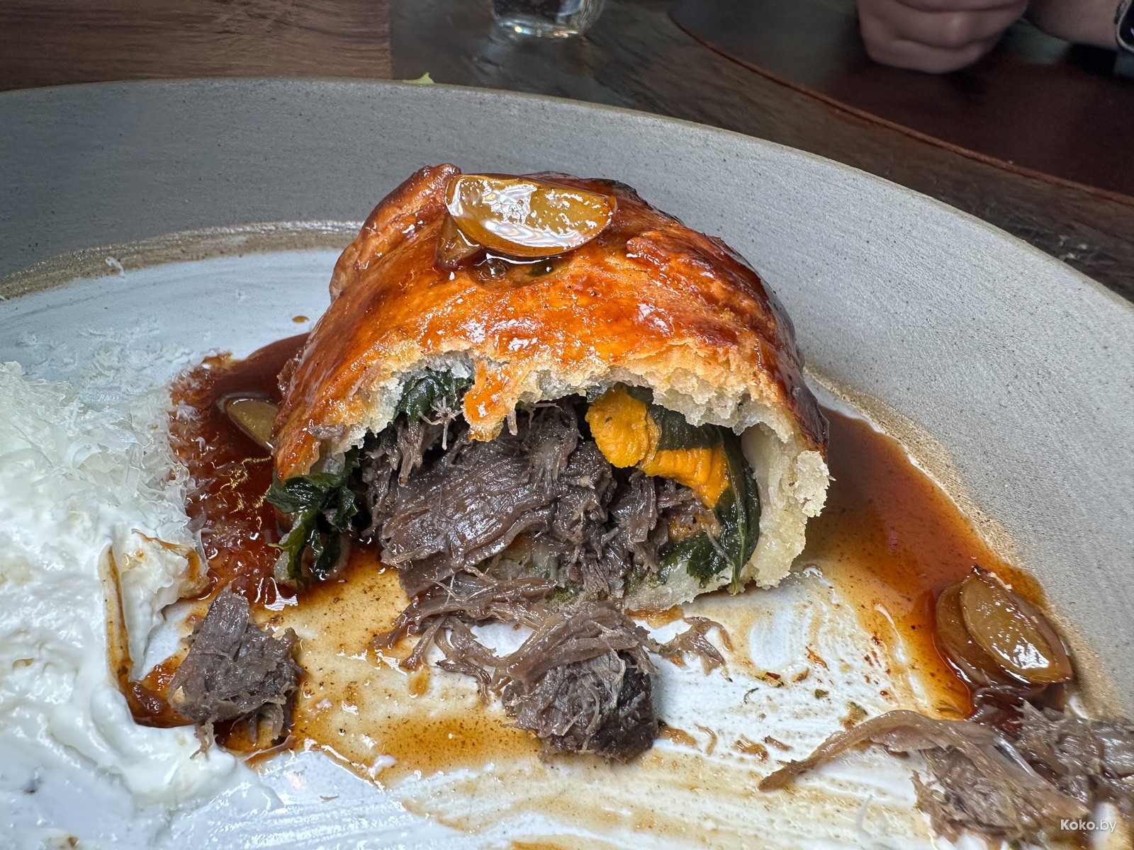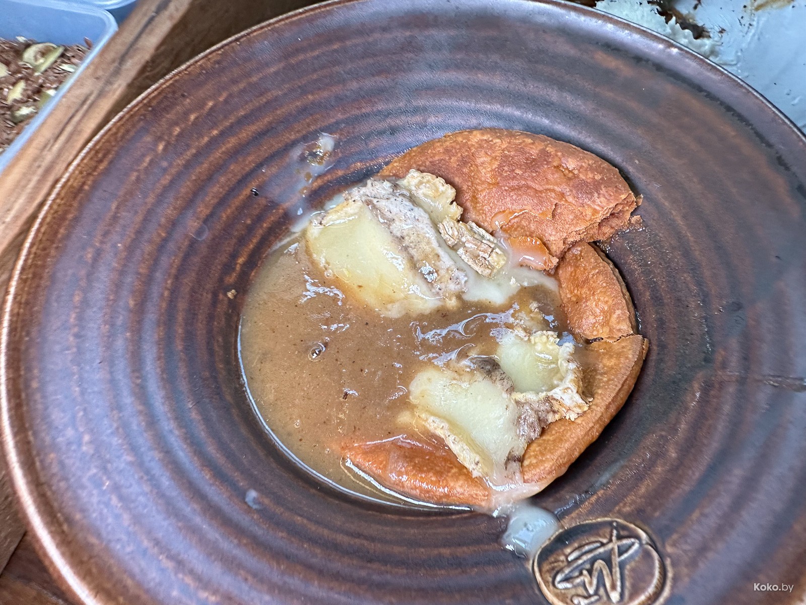 5. Домашний пирог из кукольного домика напоминает картофельный клубень, внутри которого растушенная баранина. Идеальное тесто с корочкой для сочности картины в целом обливают соусом. Восторг, но мне таких штуки две надо, а стоит один 36byn, пздц!