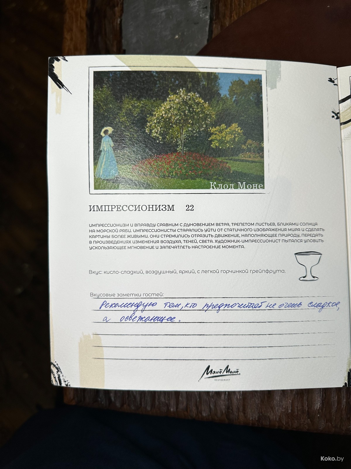 Такие форматы заведений рождаются на свет раз в год, в суровые времена вообще нет. Так вот, новый ресторан «Моне Мане» - это галерея искусств, только в еде. Двухъярусное, большая копилка разбита в интерьер, вся посуда выполнена под заказ. Как будто сам Папа Карло строгал Гранд Буратино для выступления на международных соревнованиях по плаванию, в нашем случае, какой ресторан дольше продержится на воде за счёт формата.
