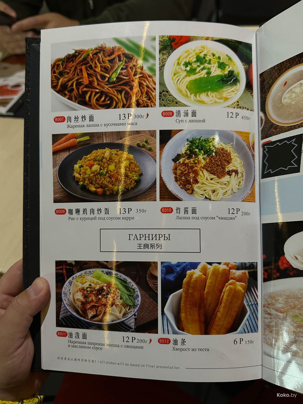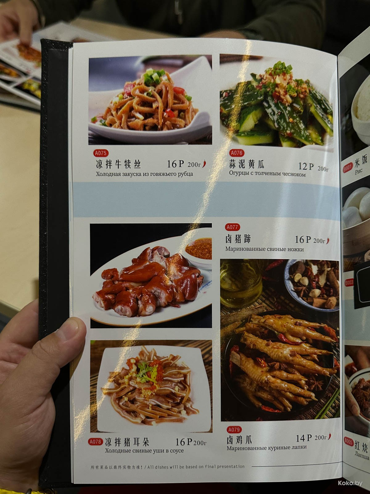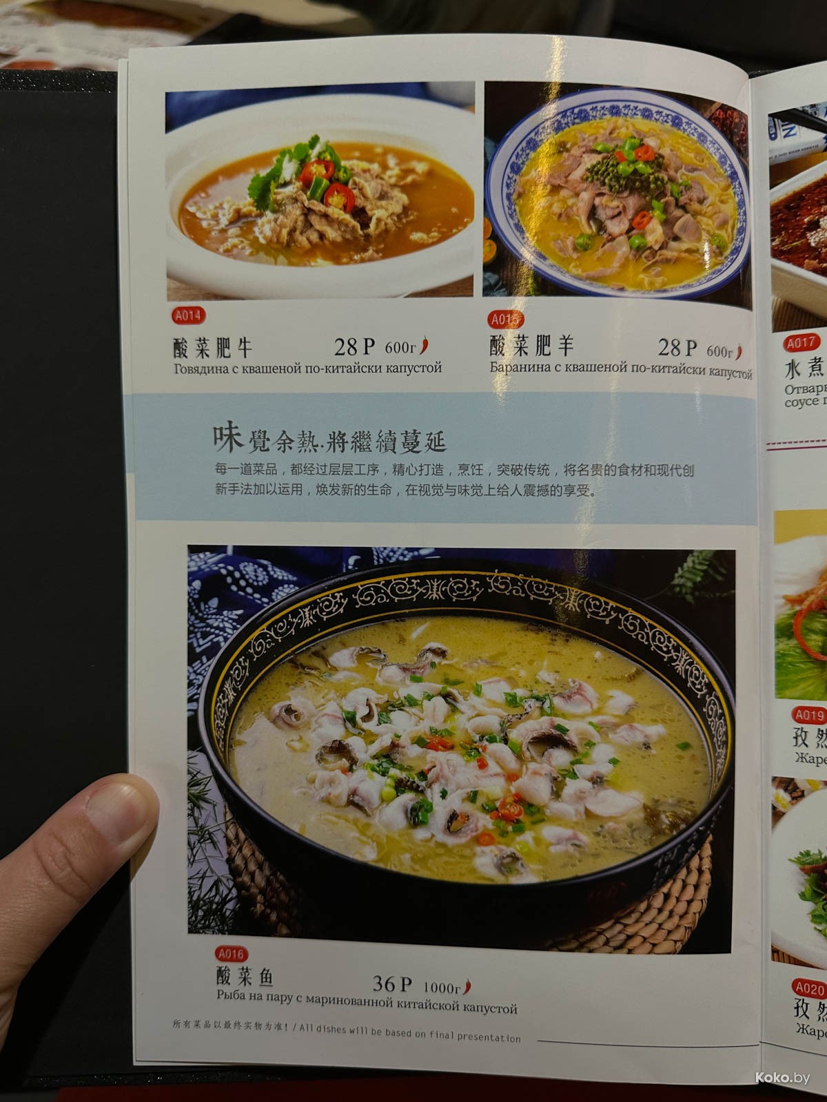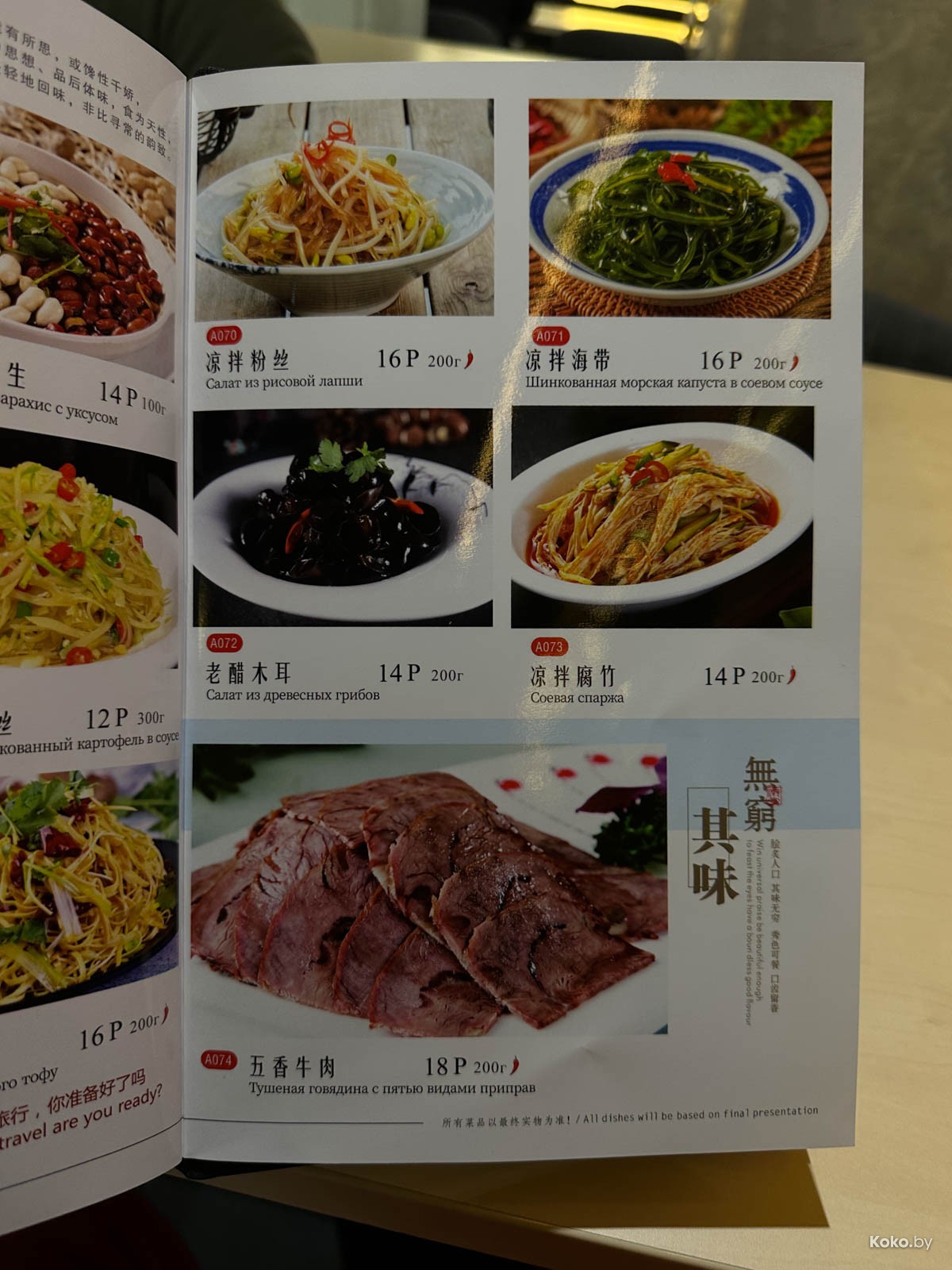Классические рецепты из курицы, свинины, баранины и потрохов с добавлением квашеной капусты или сычуаньнского соуса. Конечно же, литровые супы, лапша в соусах и овощные блюда по цене мяса.