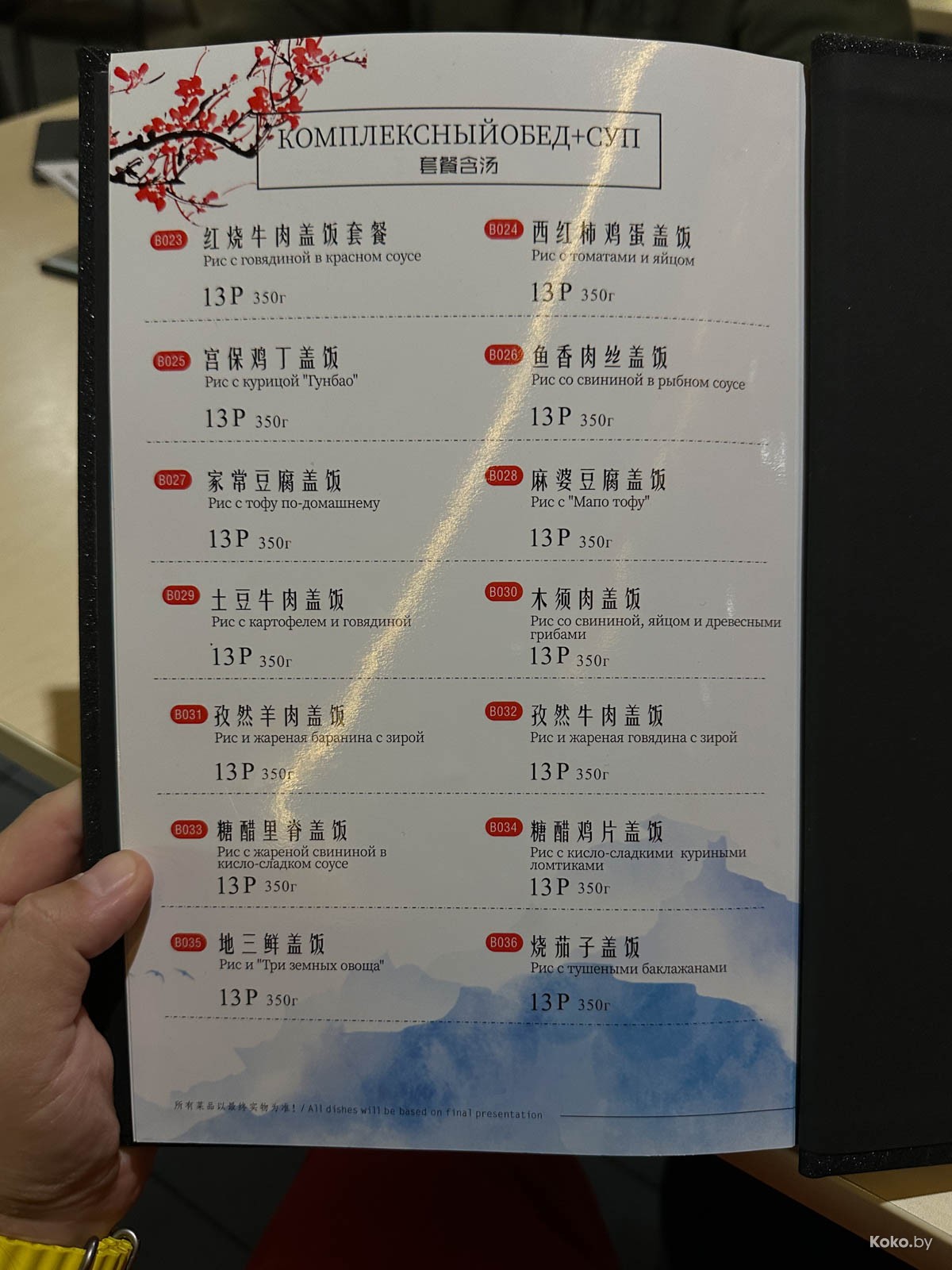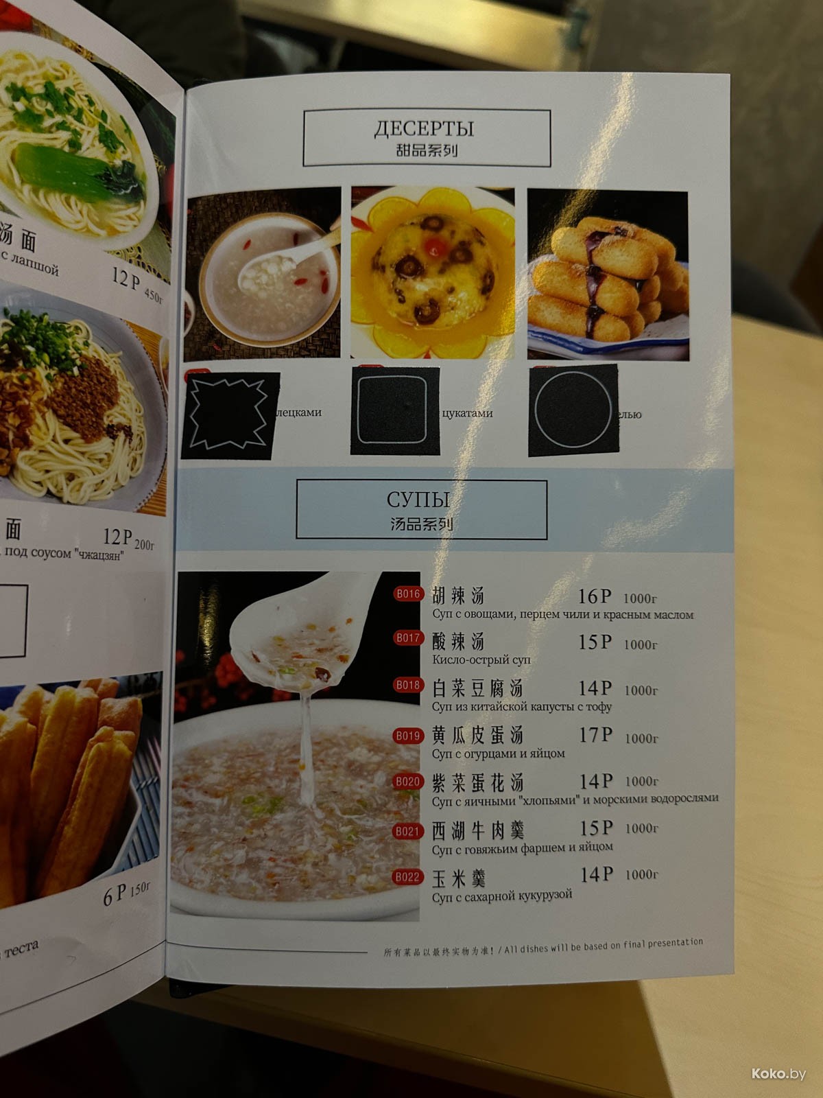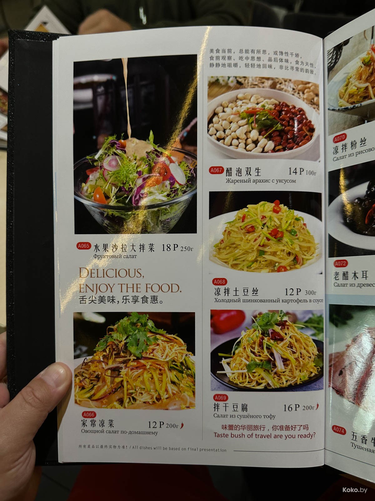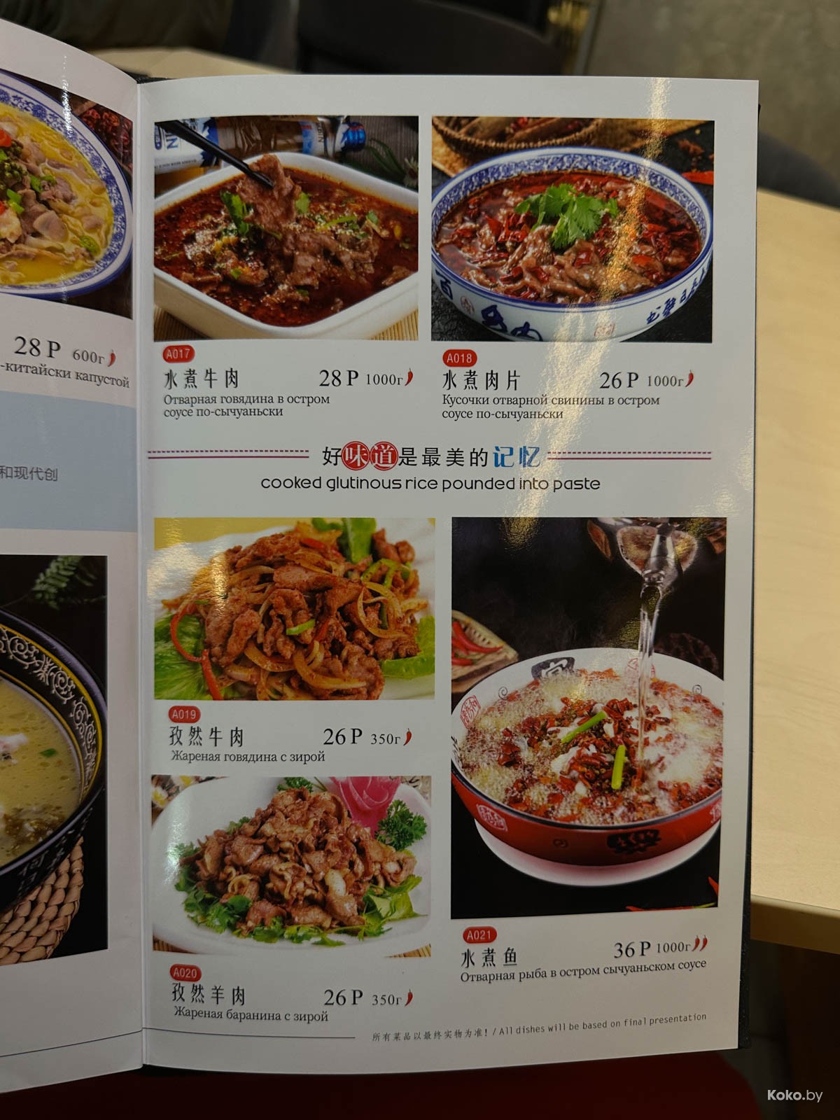 Классические рецепты из курицы, свинины, баранины и потрохов с добавлением квашеной капусты или сычуаньнского соуса. Конечно же, литровые супы, лапша в соусах и овощные блюда по цене мяса.