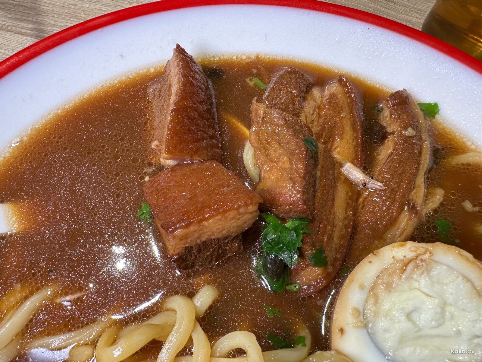 3. Не опять, а снова - здоровенная порция крепкого говяжьего бульона с упругой самодельной лапшой, карамелизированной грудинкой и переваренным яйцом. Вот молодцы, не жалеют макарон.