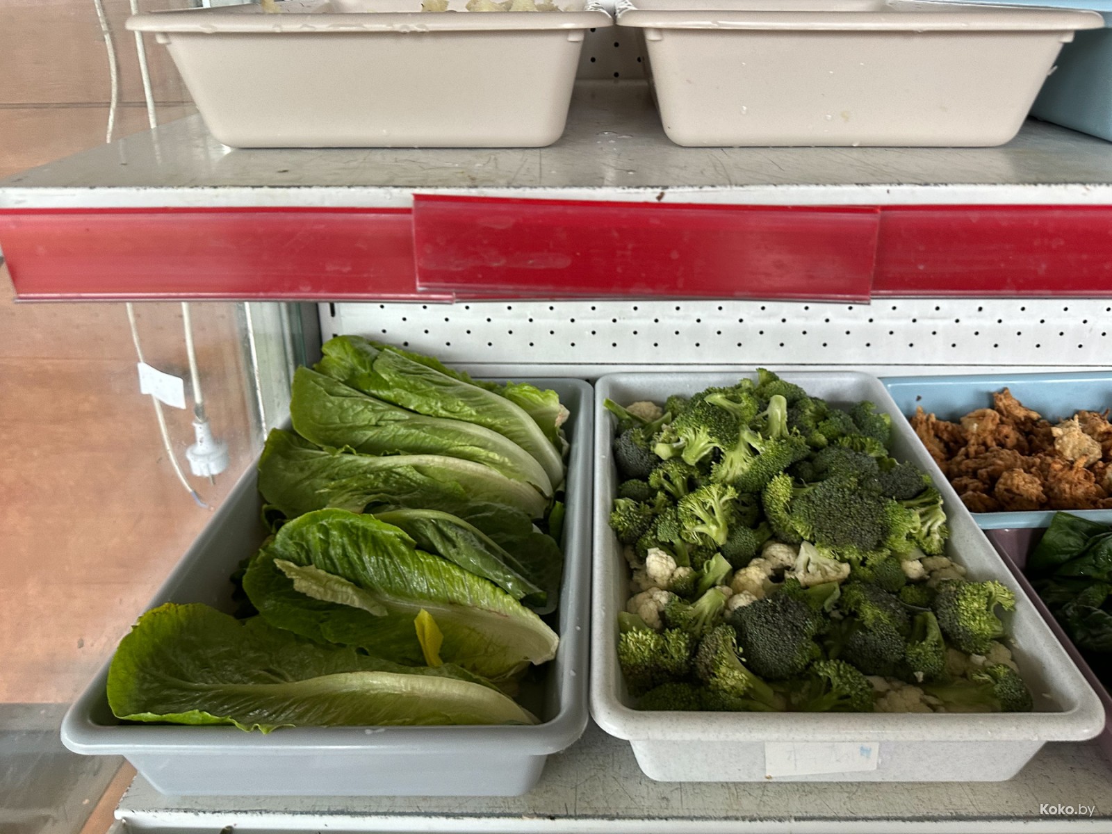 Дальше отдаём на контрольные весы, это значит, что все продукты в одну цену, еды получилось на 20р за двоих. Наше ведёрко отнесли на кухню.
