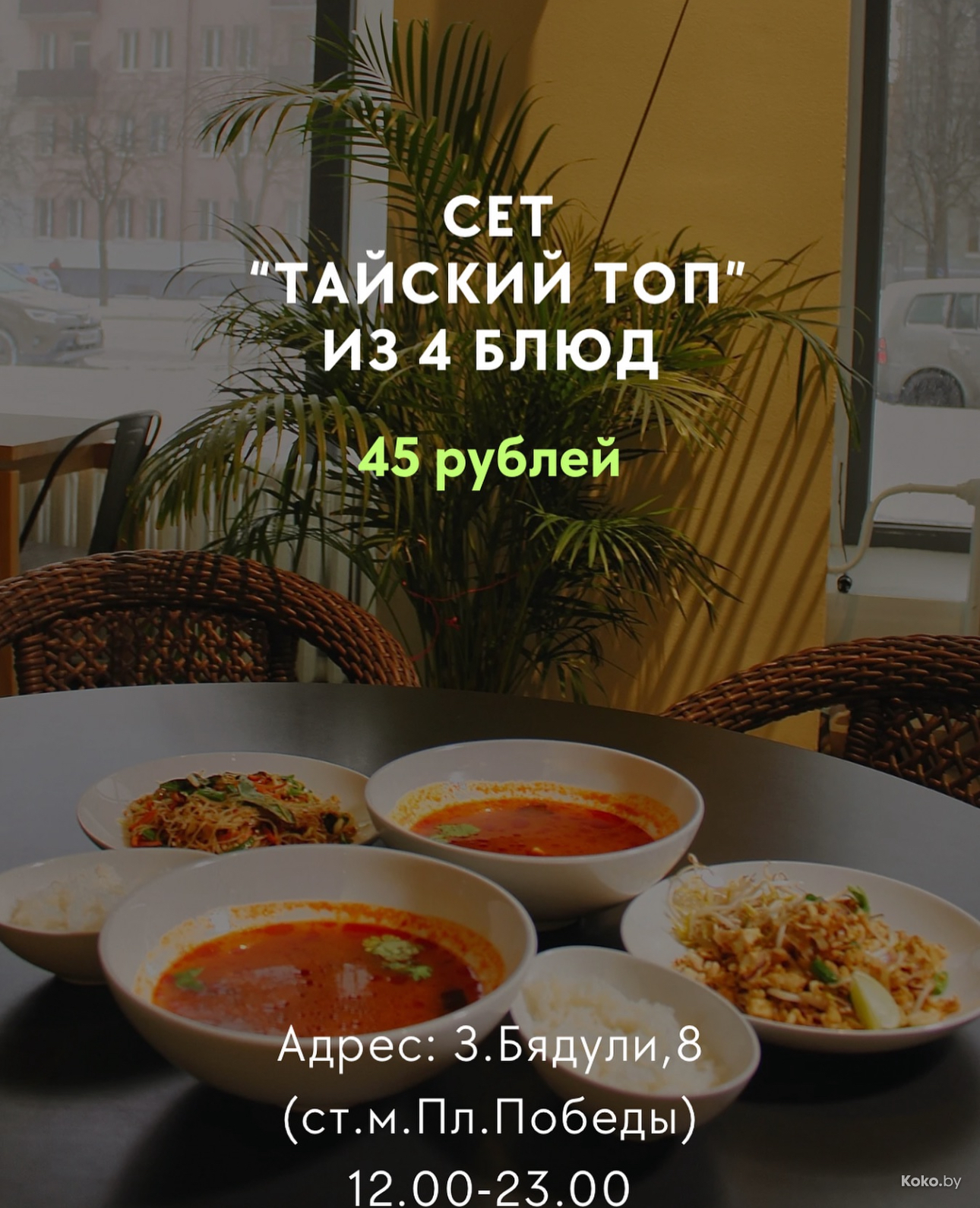 Тезисами и по делу: для уличной тайской еды прям отлично, вкусно, честные порции, справедливая цена. Теперь не придётся есть тайский суп во вьетнамском кафе. К тесту рекомендую, но планируйте навынос.