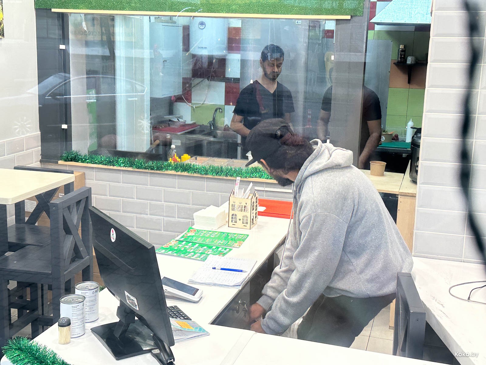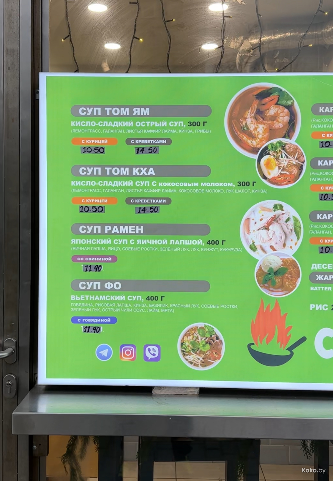 Присесть особо неудобно, как и привстать за стойкой там, где щитом меню закрыли прекрасный вид на улицу Кульман. Короче, еду лучше брать с собой, или есть тогда, когда никого нет. В «Сайгонах» уютней.