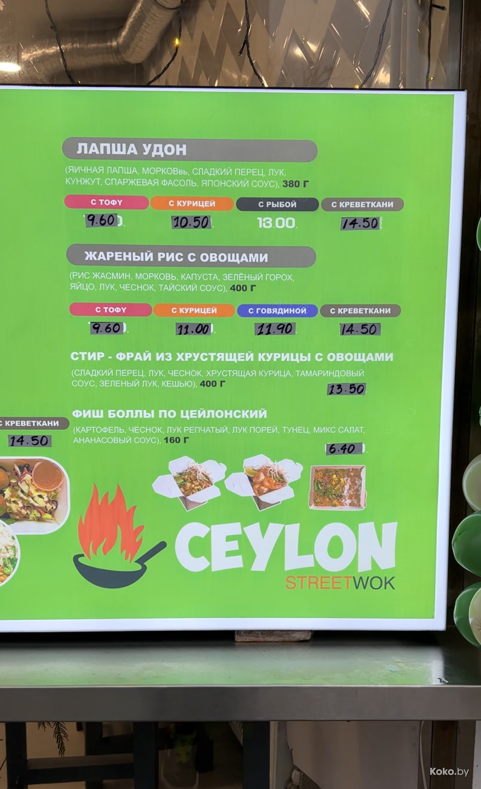Цейлоном раньше называлось островное государство Шри-Ланка, видимо, решили по старой памяти и назваться. Интересное наблюдение: старое кафе «Кокос» тайских рецептов Сумуду около кинотеатра «Октябрь» недавно рипнулось. А тут хоба - новая тайская еда, совпадение? Не думаю! В меню такие же фото, блюда тоже один в один, за раскалёнными воками стоят носители восточной культуры. Походу, парни решили работать на себя, выбрав неудачное место.
