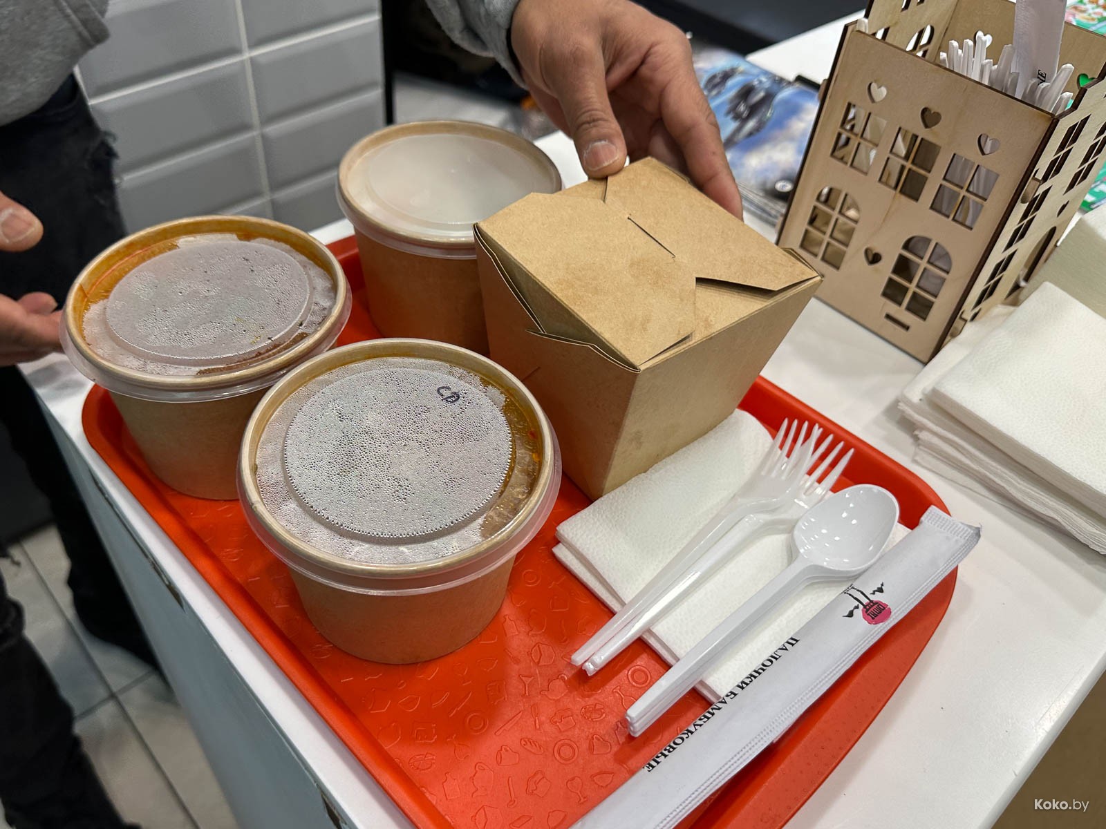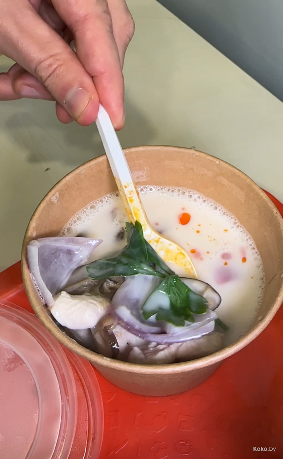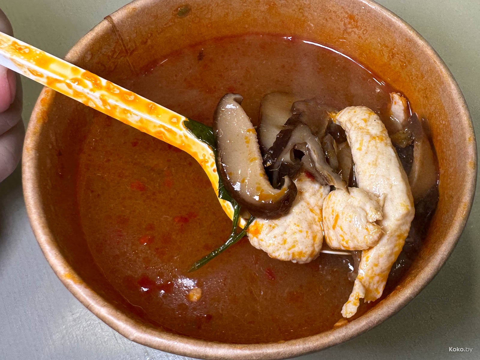 1. Уличной еде - уличная посуда! Том Ям с курицей за 10,50р в лучших традициях Сумуду - яркий, слегка кисловатый бульон, можно запросить сделать адским острым. Об этом вы пожалеете два раза.