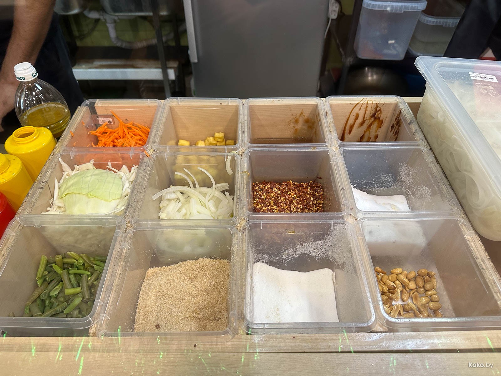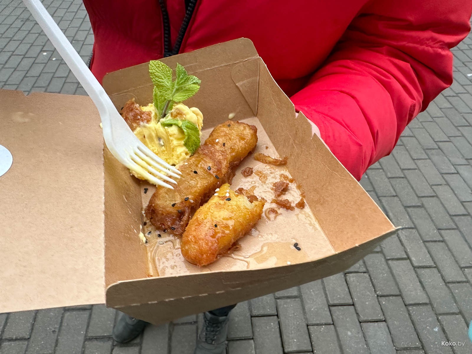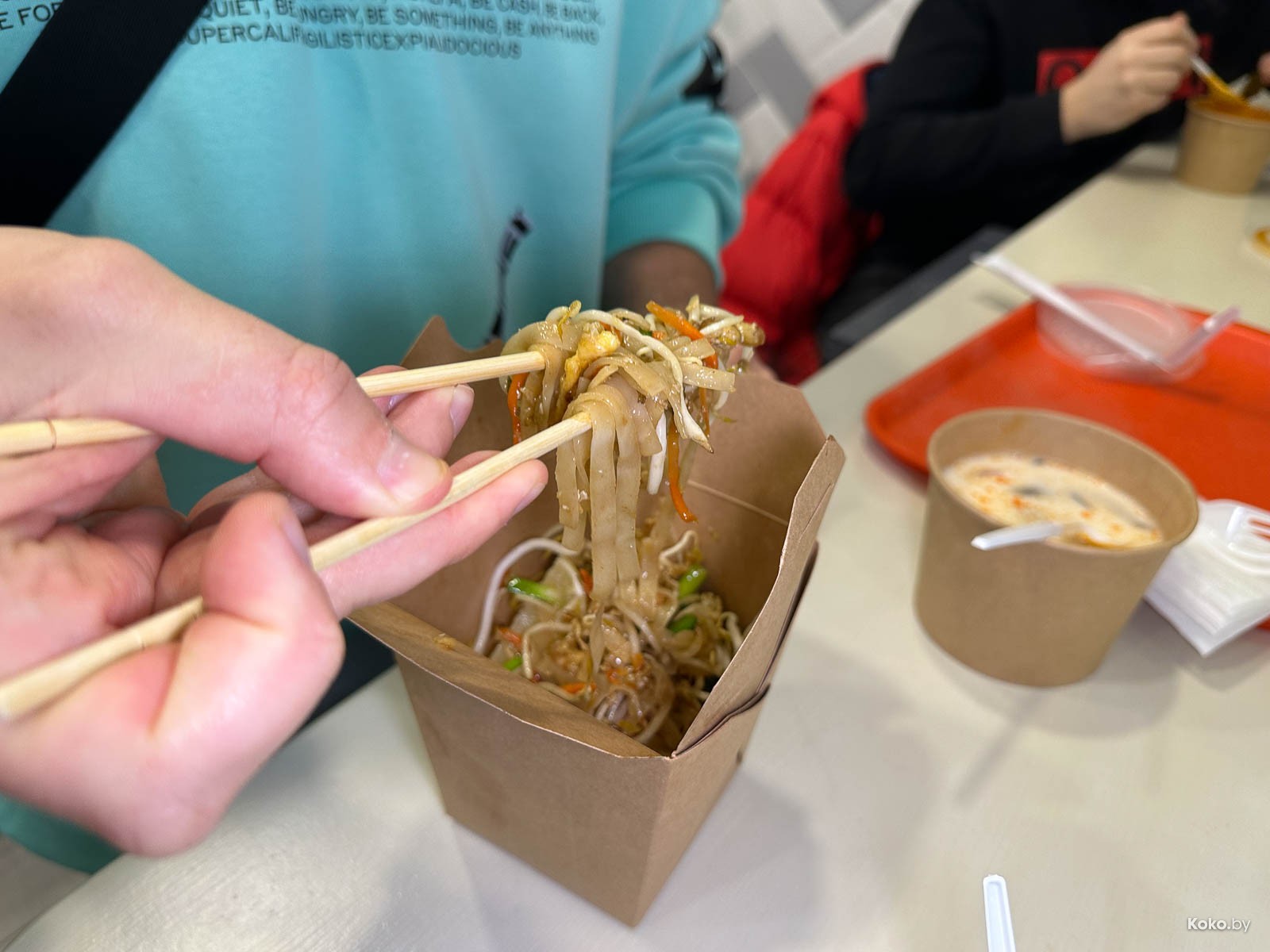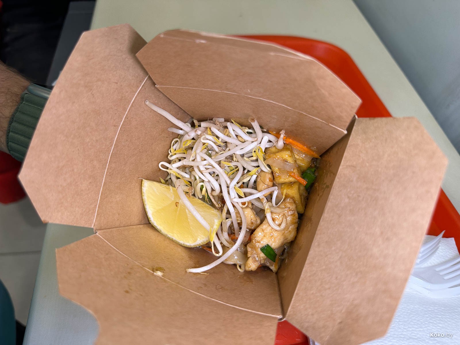 3. С лапшой в коробке за 10,50р случилось лучшее вложение денег в уличную еду. Пад Тай с жареным сыром тофу, ростками и арахисом грамотно заправлен, всё в балансе, вместо кусочка лайма закинули кусок лимона, но это не беда, что там не ждут меня. На 8 кокобаев!