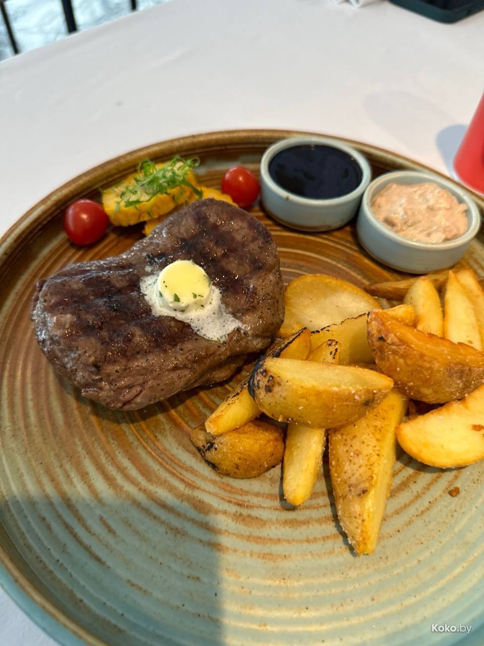 Сама говядина вкусная, в прожарку Медиум Рэ - попали, но быть подошвой при такой адской цене - это 5 кокобаев, и на гуляш.