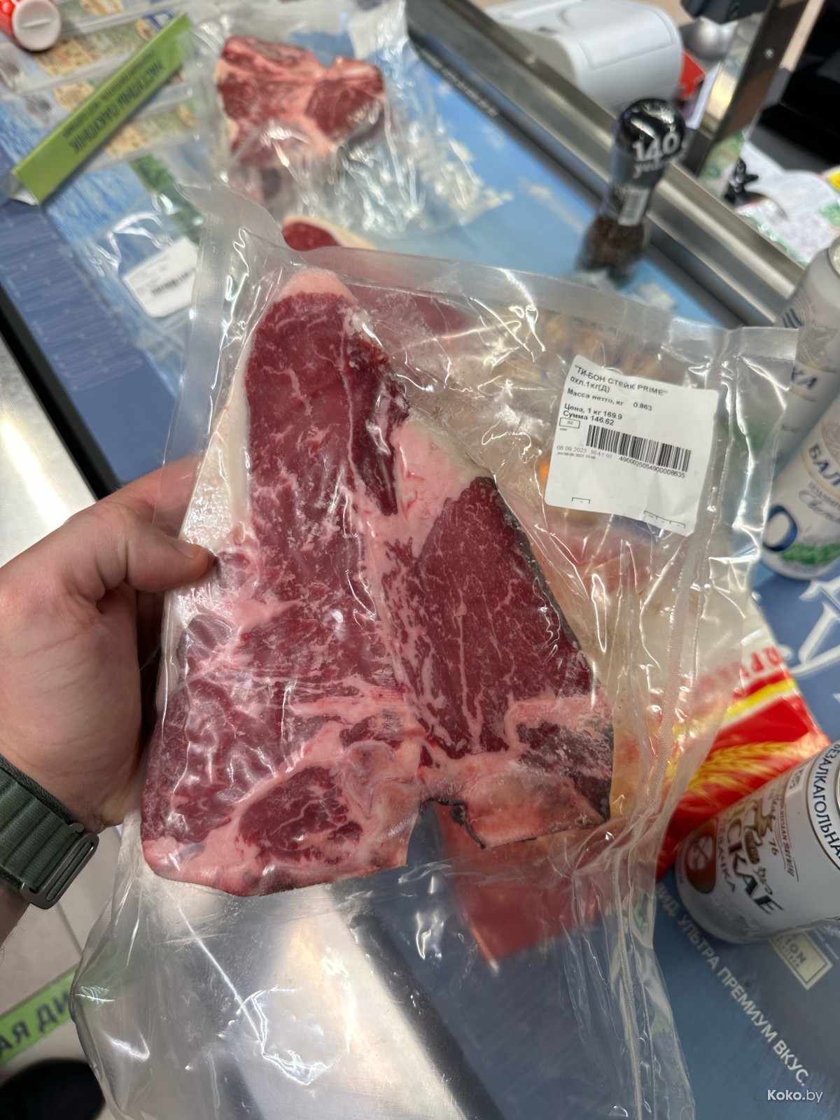 Или же взять выдержанный стейк Ти-бон от того же «Праймбиф» в «Еврике Палаццо» и пожарить его дома. Ел и плакал от счастья.