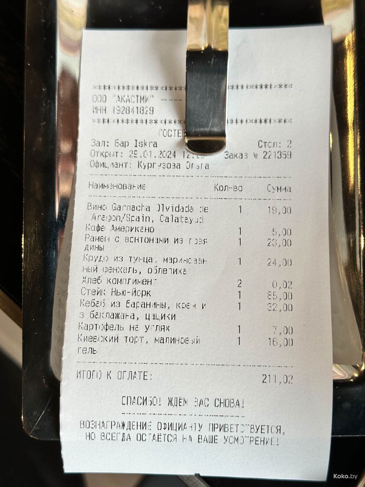 Тезисами и по делу: двоякое послевкусие, от еды мощной искры не получил, денег потратил, будет повторный перетест бургеров. К тесту под винишко советовать могу, остерегайтесь всех стейков.