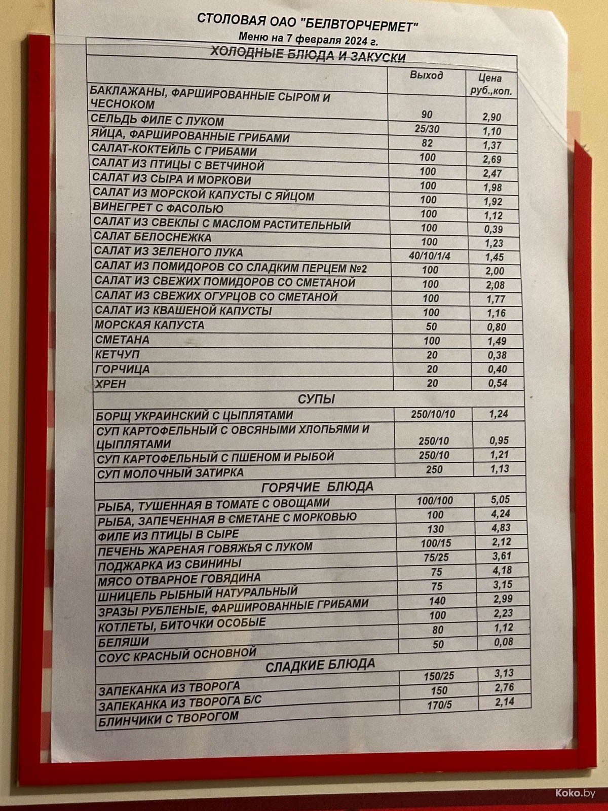 Пообедать до 10 рублей. Проверяю сколько стоит заводской обед из зимнего меню в столовой «Белвторчермет»