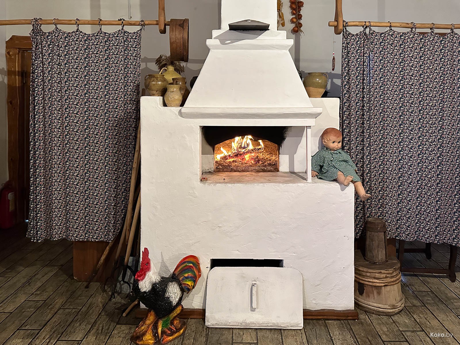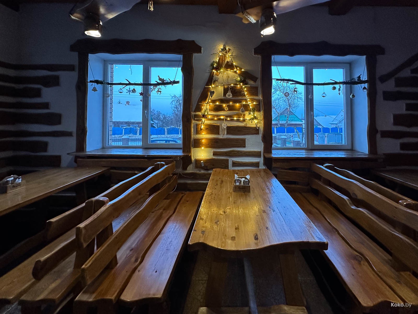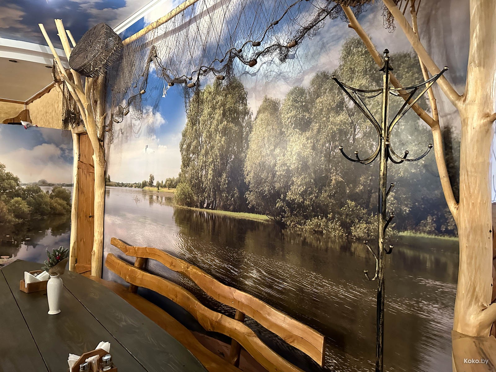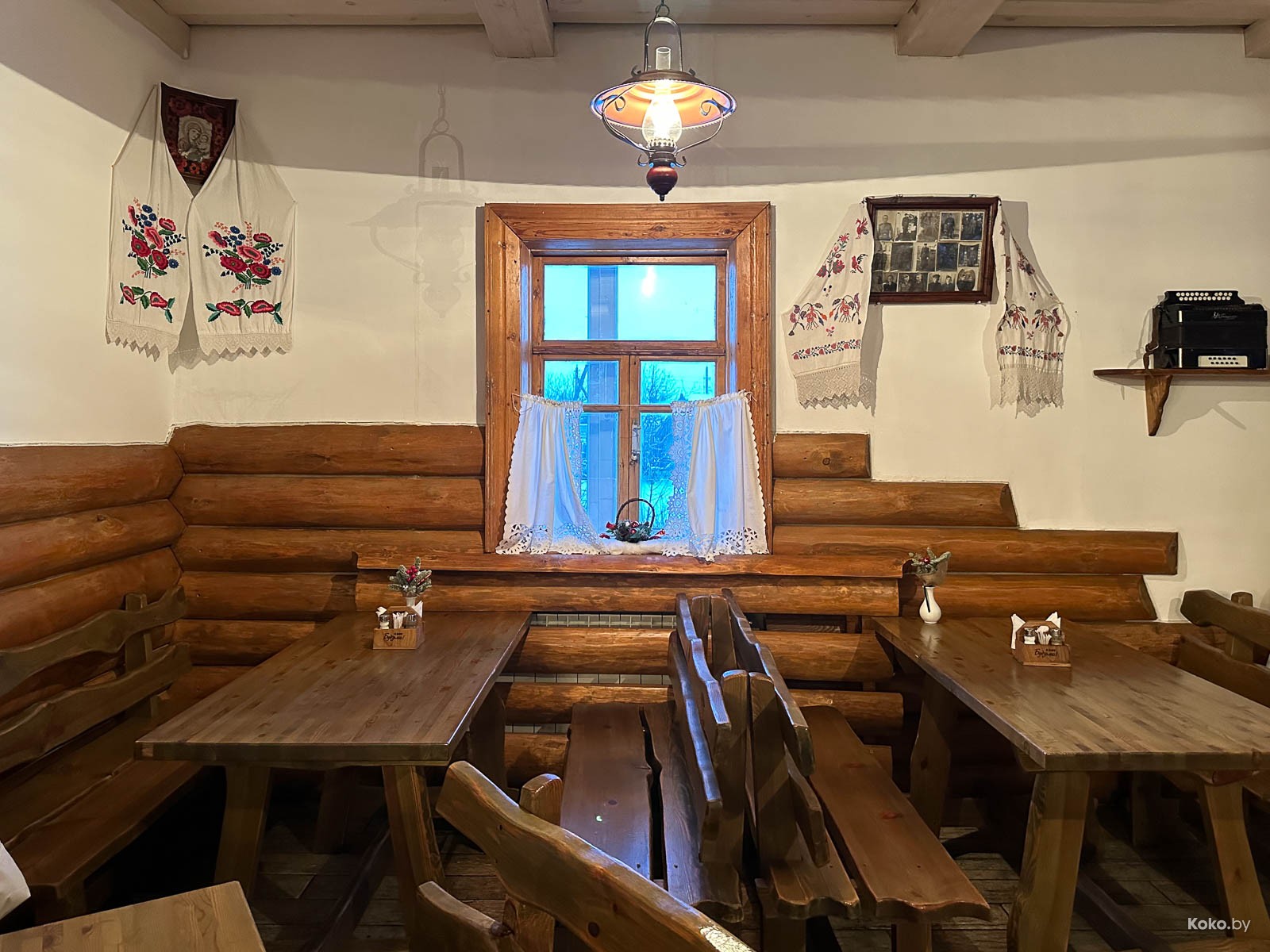Переступив порог, сразу захотелось накатить! Атмосфера княжеского дома, витражи вместо окон с изображением гербов городов, входящих в состав Турово-Пинского княжества. Пока ждали еду, нам провели экспресс-экскурсию. В конце зала растопили деревенскую печь. Кааайф!