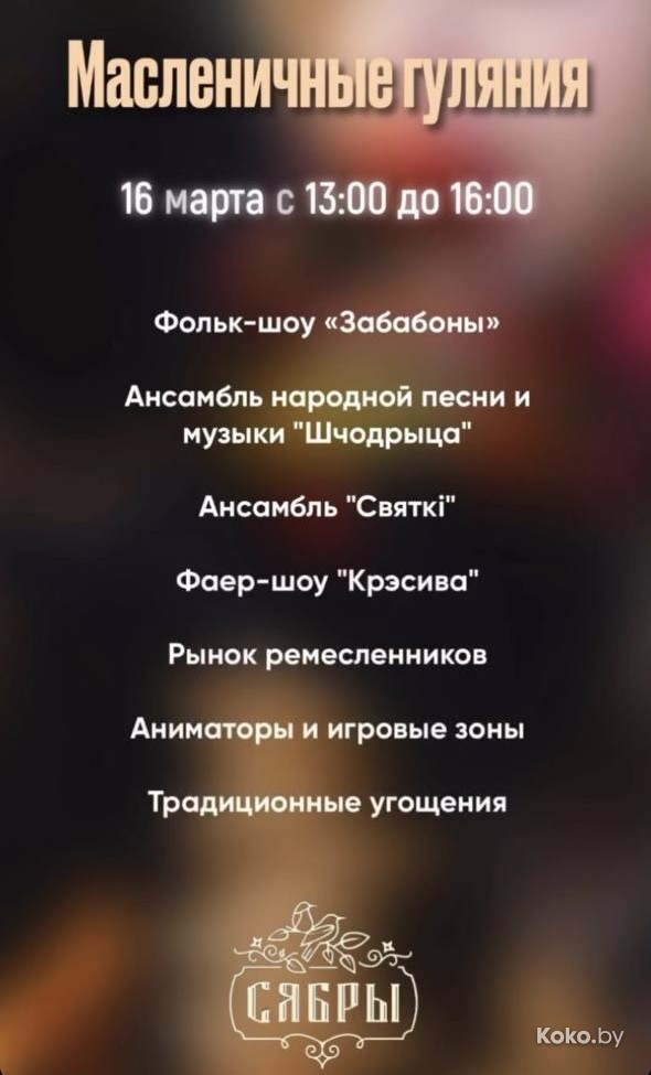 С 16 по 17 марта за городом нас ждёт веселье, рекомендую к поездке.