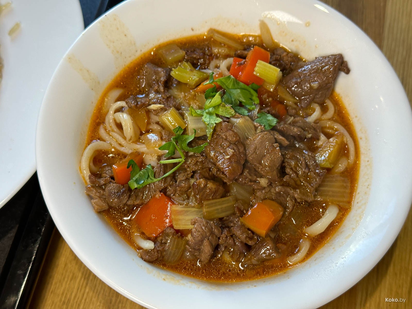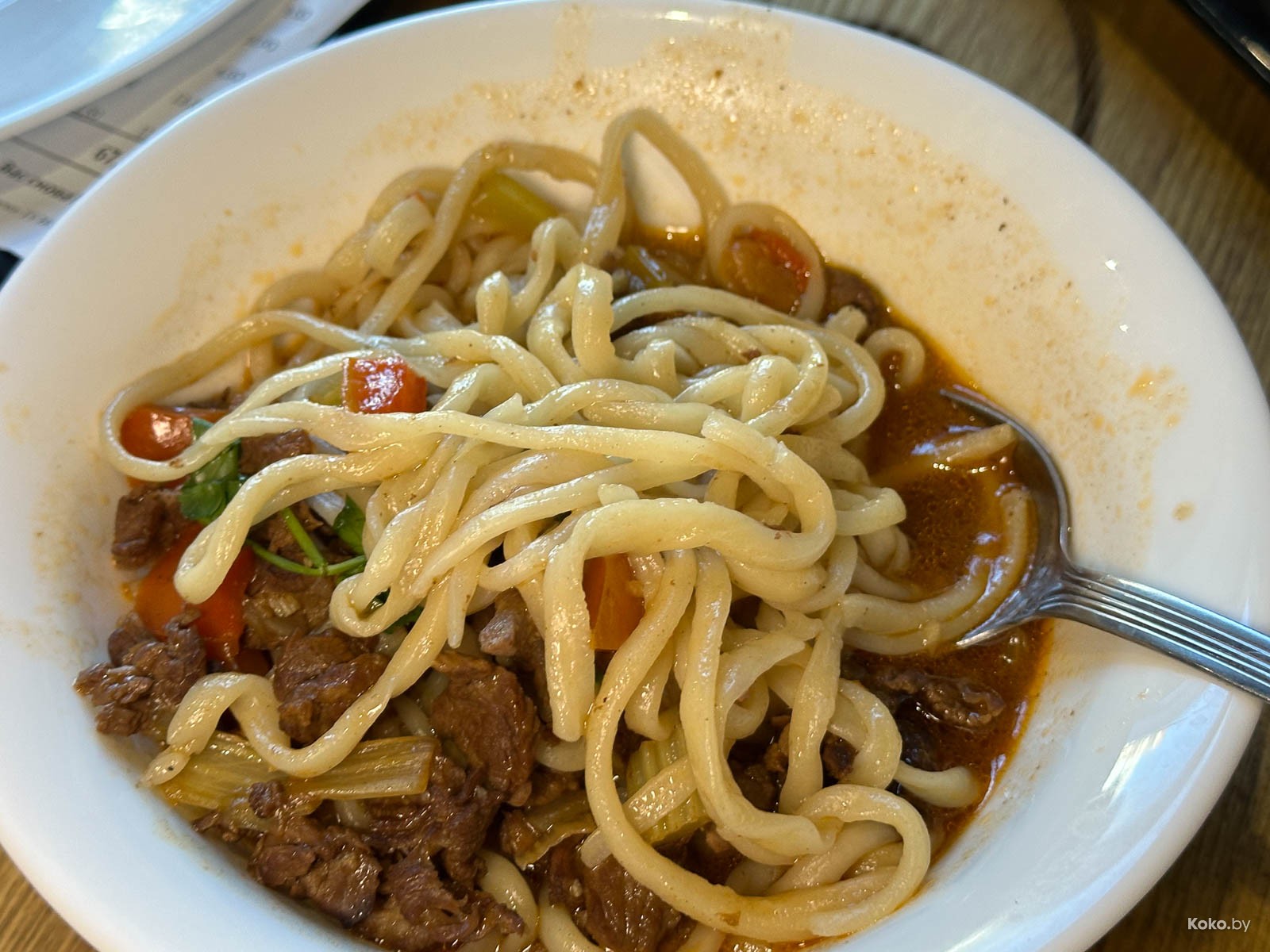 2. Тарелка супа лагман за 11,50р выглядит, как схалтурили. Под самодельной лапшой две столовых ложки пряного бульона. Негодно! Посмотрите, какой крутейший лагман за 5р наваривают на Комарах.
