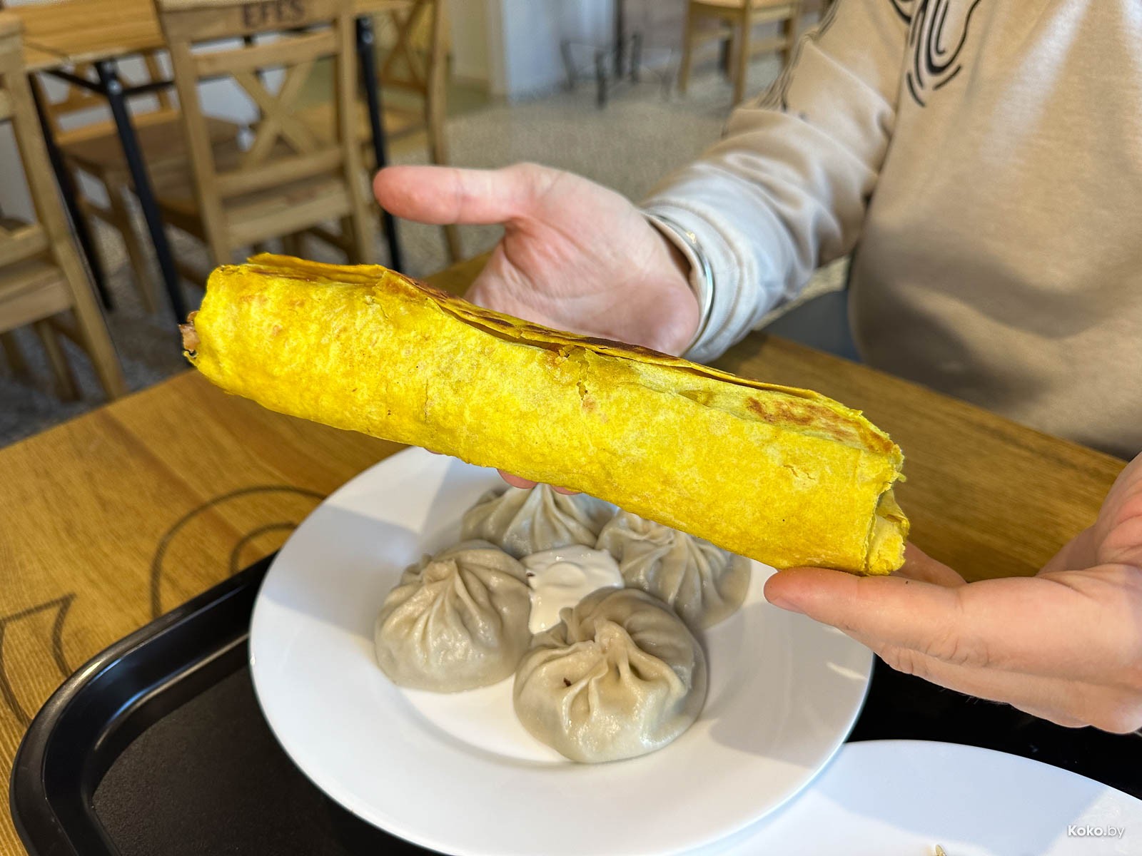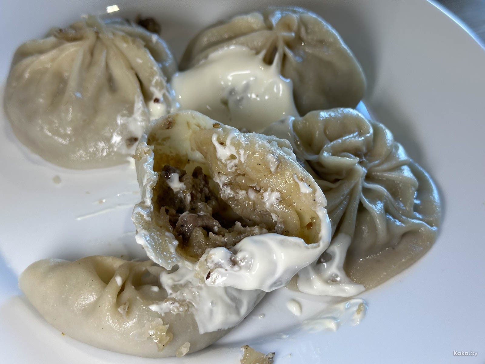 4. Четыре манта со сметаной за 10р. Под эластичным, непереваренным тестом скрывается крупно порубленная говядина с жирком и луком. Сочные, жирненькие, слегка сладковатые. Вот тут молодцы.