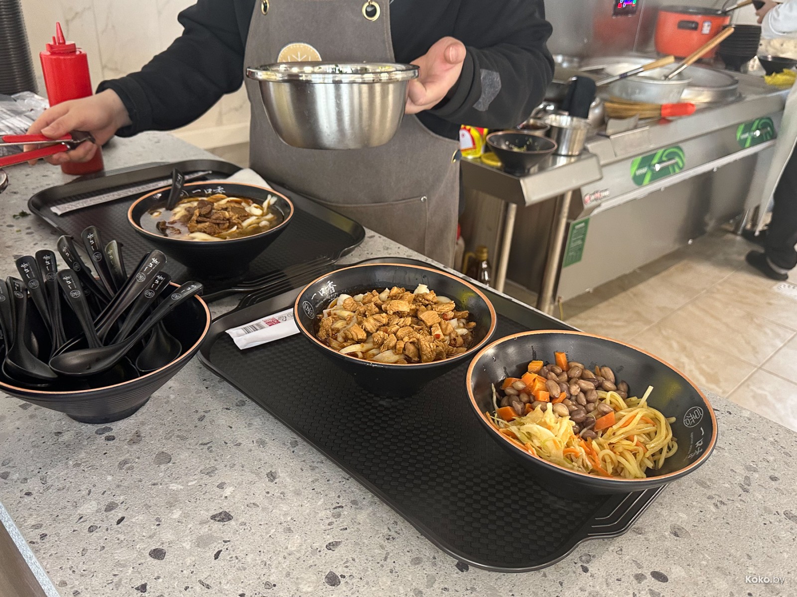 2. С бульоном и элементами свинины за умеренные 16р поинтересней будет. Крепкий, мясной, пряный, понятное дело, со щепоткой усилителя вкуса. Варенье чили делает бульон пикантней, на 8 кокобаев!