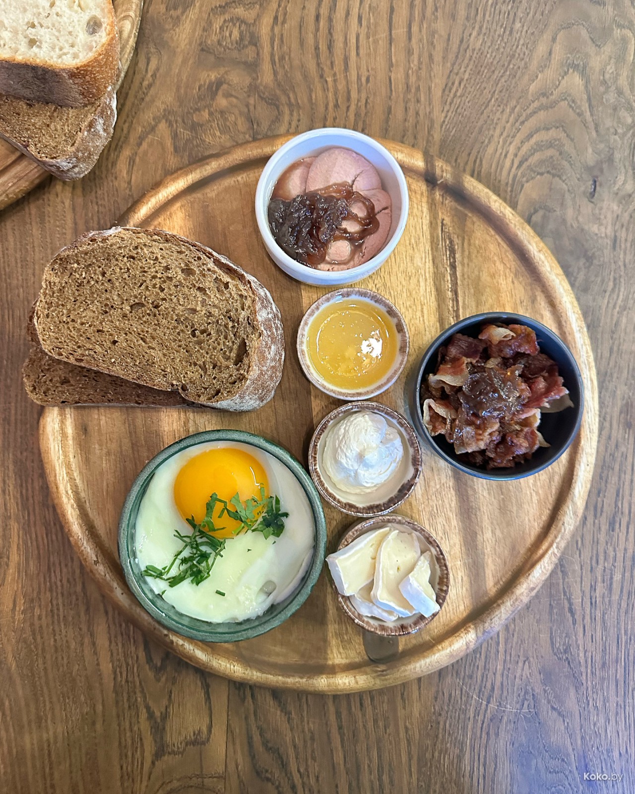 Почти шакшука, а где сыр Фета? Терин типа паштет с джемом - отлично, хлеб ни хорошо ни плохо, лучше покупать у топовых пекарен.