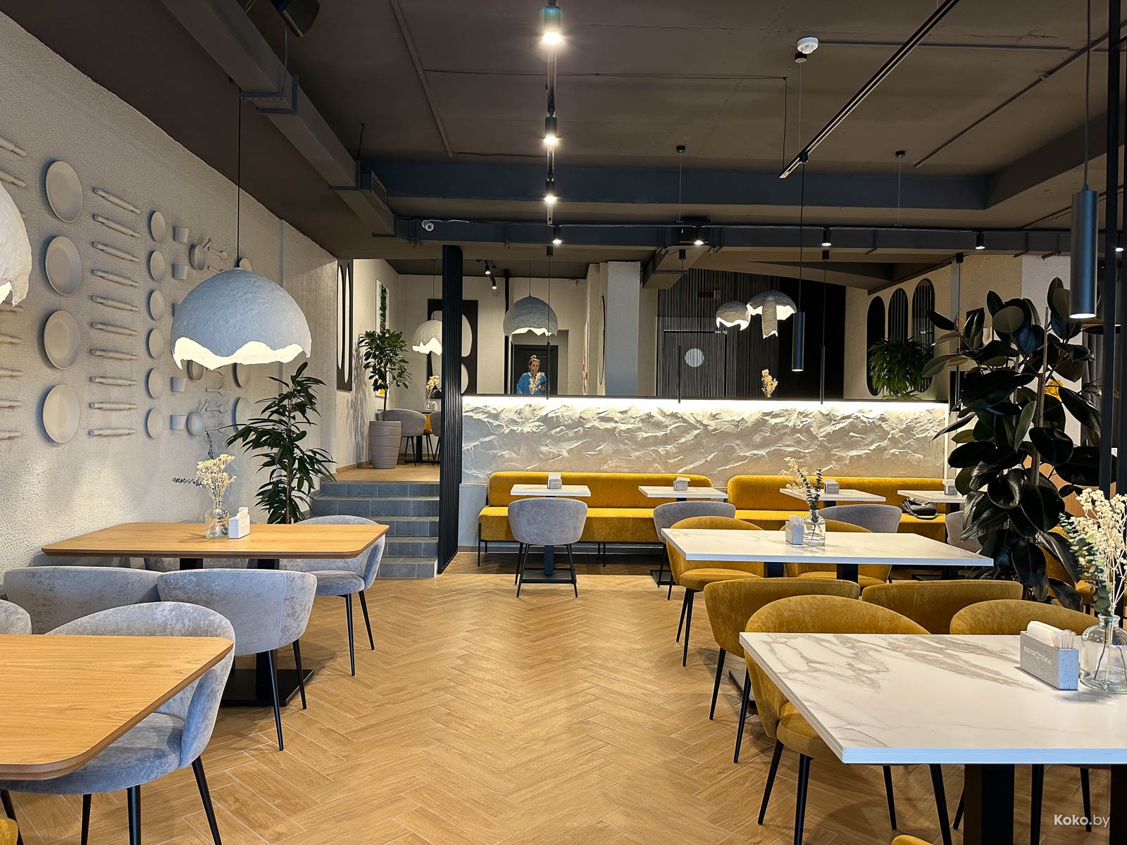Дог-френдли, простенький, недорогой ремонт, скорей всего, сам себе дизайнер. В помещении светло за счёт единственного большого окна, уверенное количество столов, но выдержит ли кухня полную посадку? Концепции кафе с названием не прослеживается, но уютно с порога.