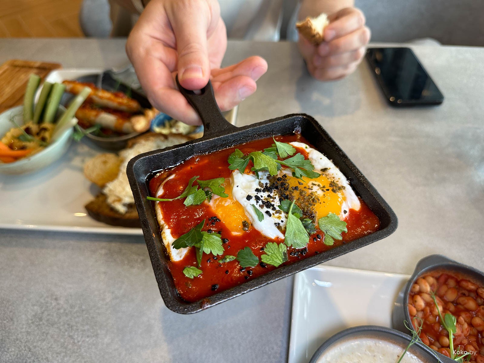 2. Минут через десять с кухни вынесли первый набор еды, забыв отмеченную самолично карликовую мини-бейби-шакшуку. После моего вопроса прибыла и она - старый, но память, как у собаки.