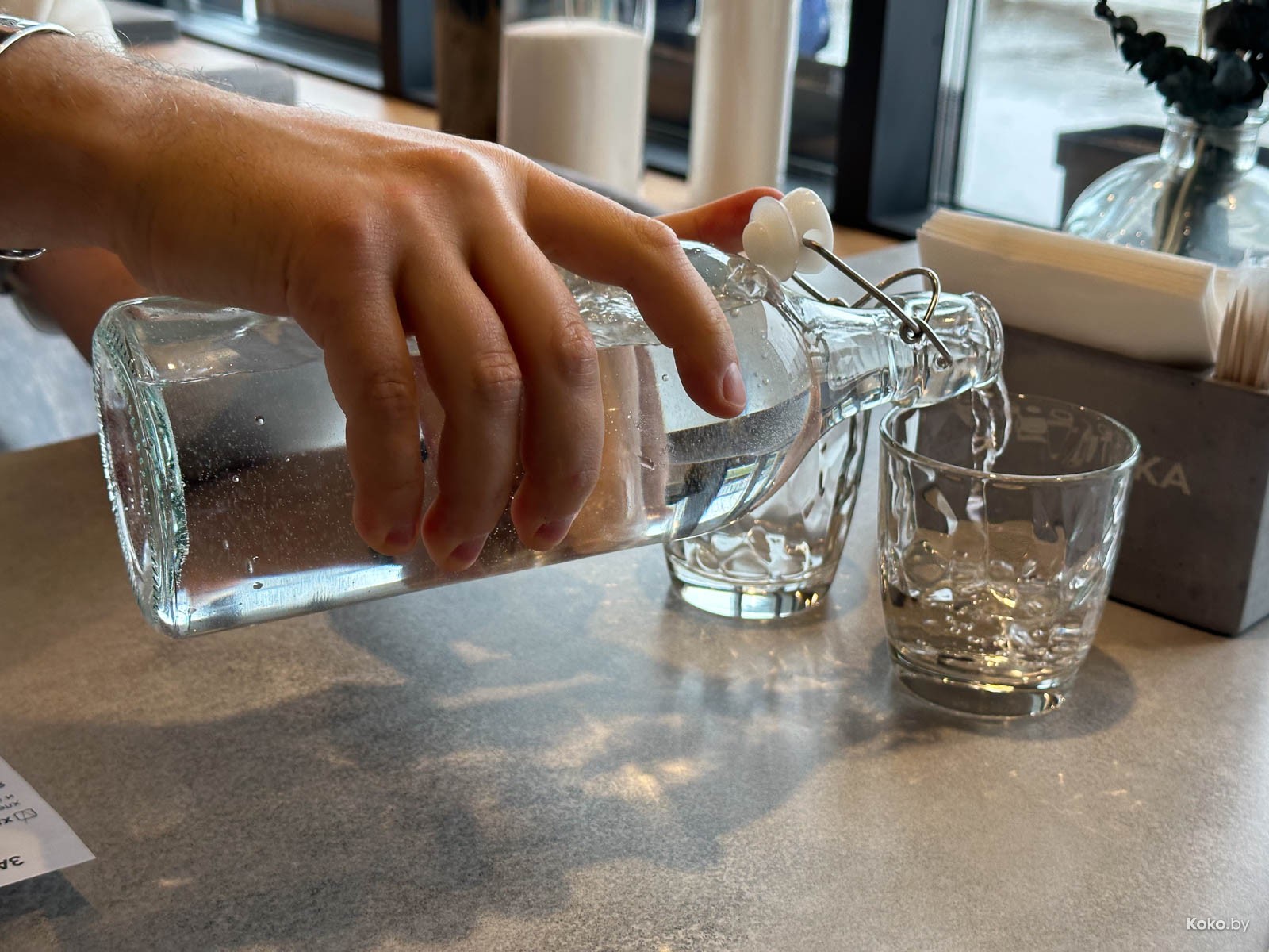 1. Бутылка воды в стол за счёт заведения, средней руки капучино - 5р.