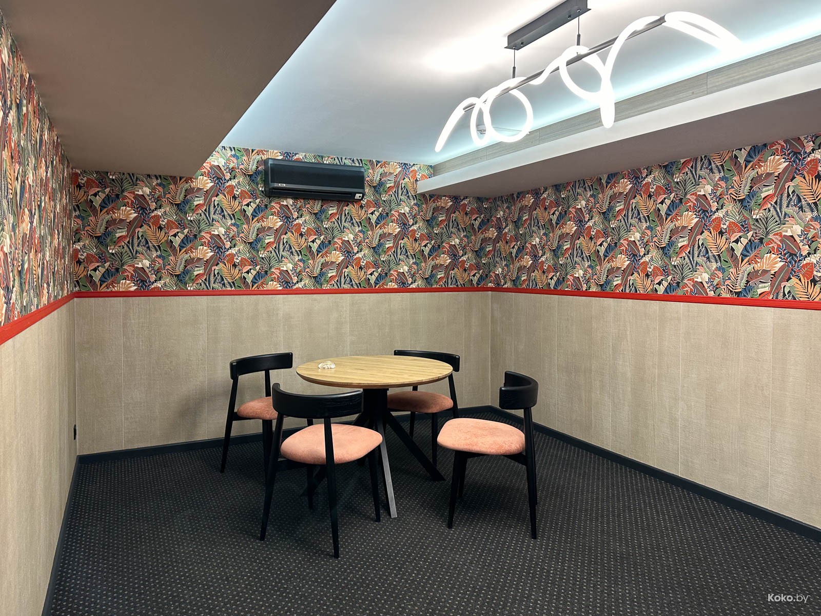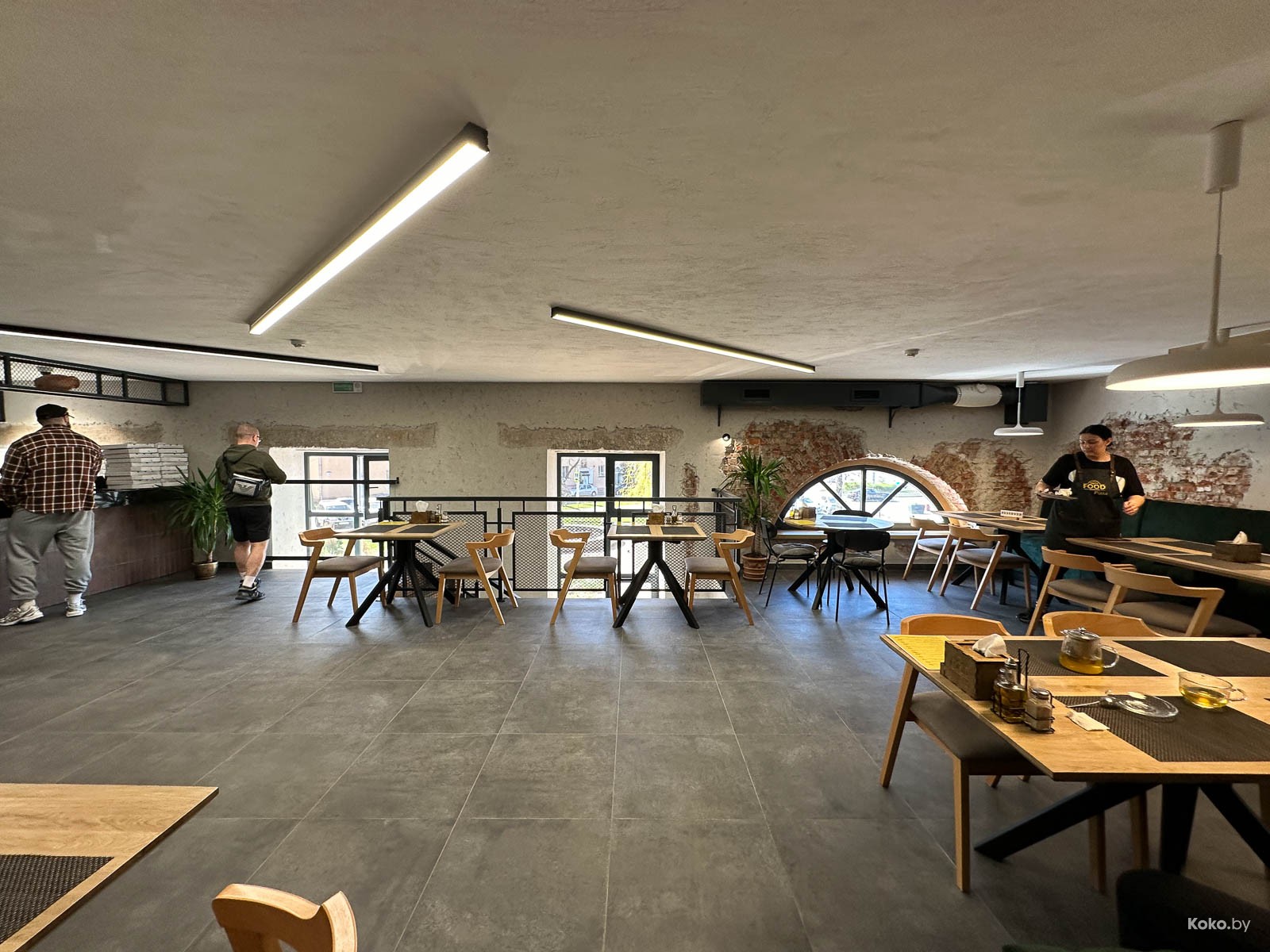 Старое кафе в жанре «От заката до рассвета» глаза не узнали. Отправили на мусорку старые казиношные ковры, расчехлили окна, чтобы видеть солнце, заменили мебель, содрали лепнину и подвесили кондиционер.