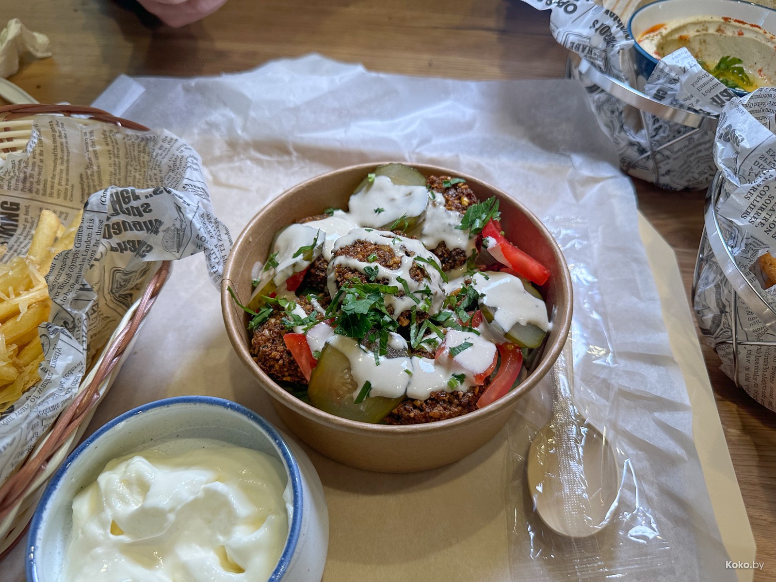 5. Фалафель в боуле, как в лучших уличных израильских едальнях: мягкая текстура, хрустящая корочка. Хумус такой же шикарный.