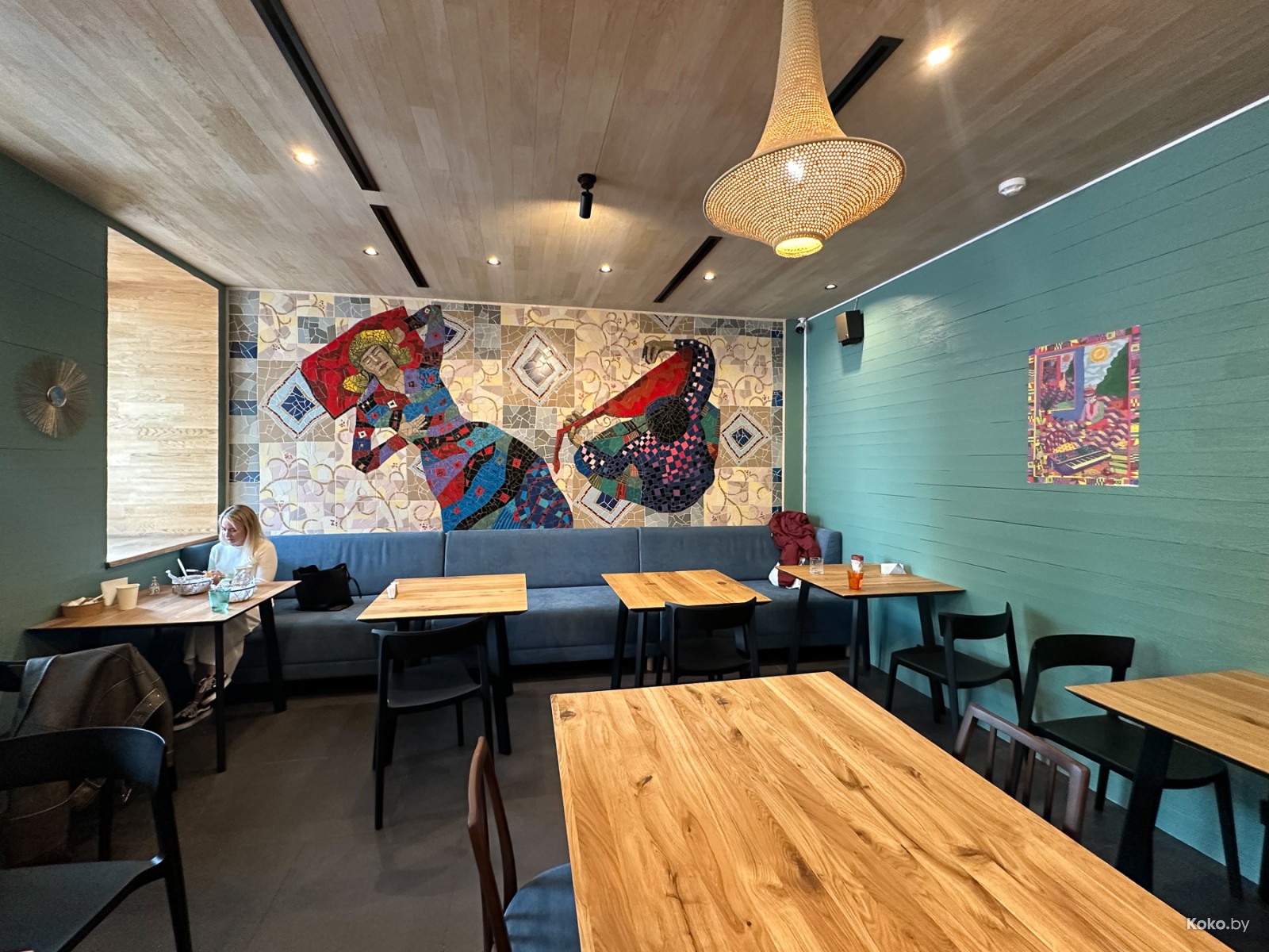 Ничего сверхъестественного, простейший ремонт, пара рукотворных картин, мозаика с отдыхающей женщиной и открытая кухня с открытым вертелом. Типичная стритфудщина, которой не хватает женской руки.