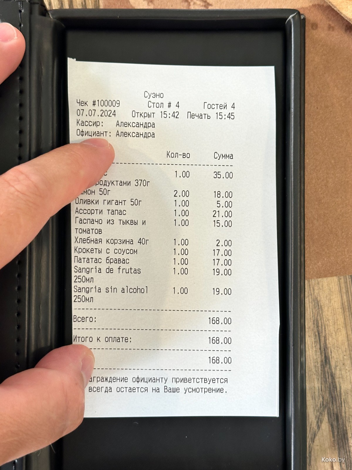 Тезисами и по делу: получилась испанская закусочная средней руки, тяжело им будет конкурировать за гостя на Комсомольской. Посмотрим, какое «Пеллегрино» откроют итальянцы через стенку от них 28 июля.