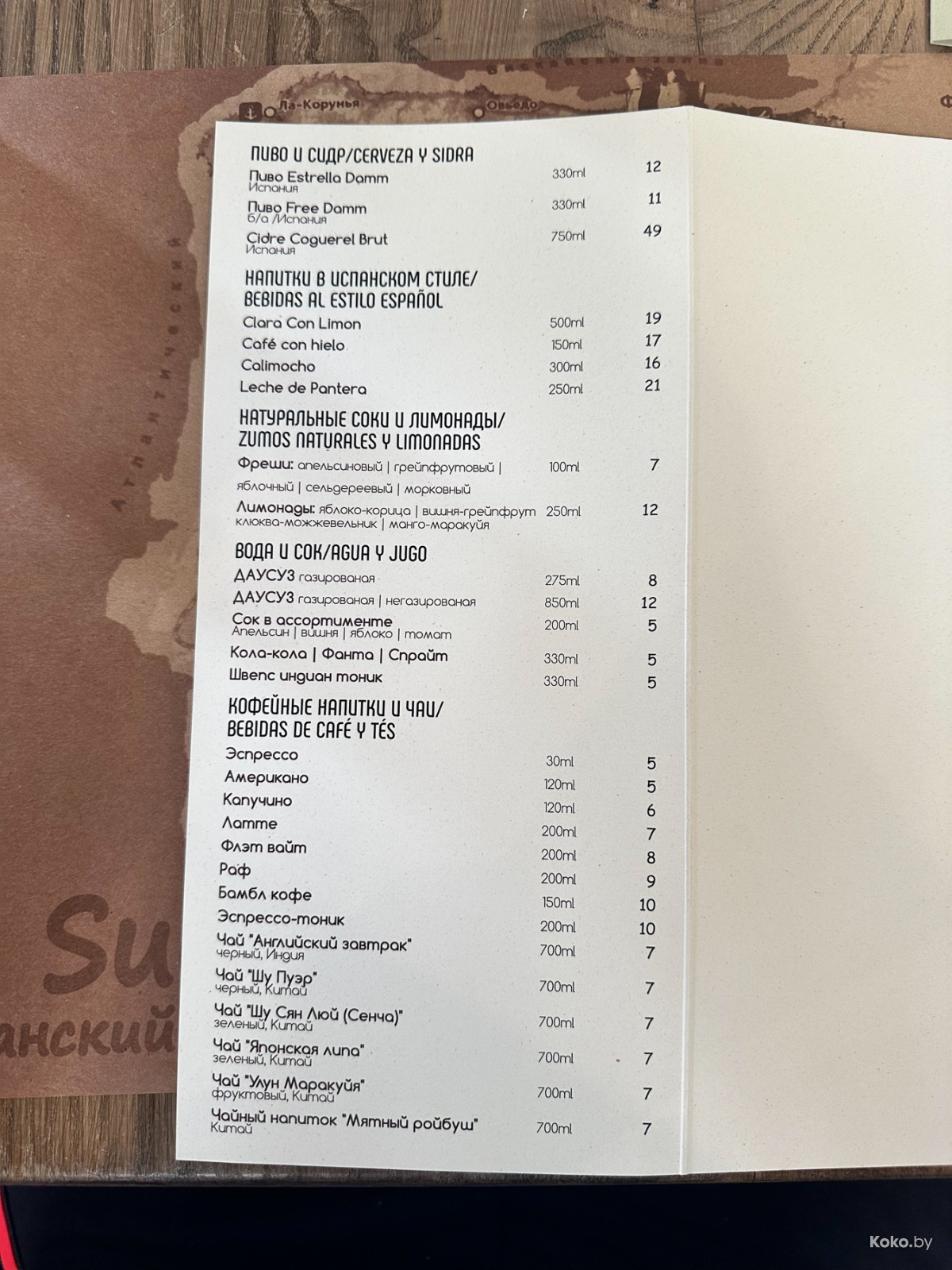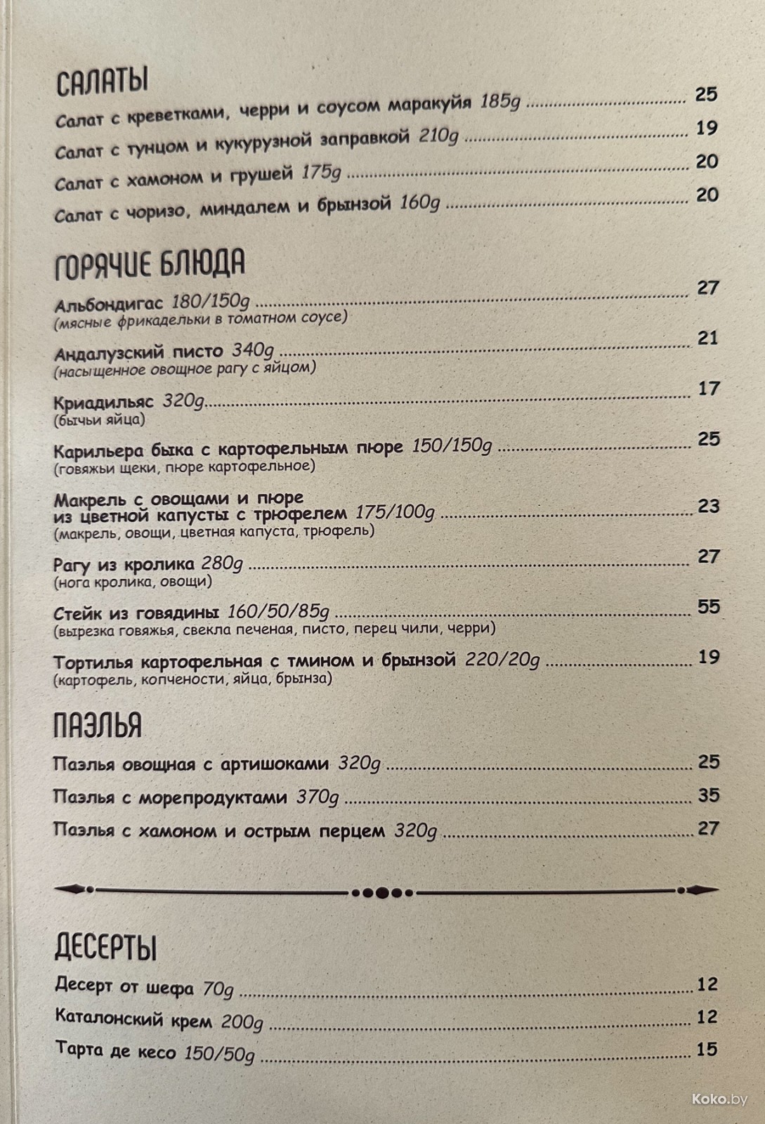 Вижу хамон по 9р за 50г, для любителей бычьих яиц - Криадильяс за 17р, паэлью трёх видов, крокеты, всё по привычным для Минска ценам.